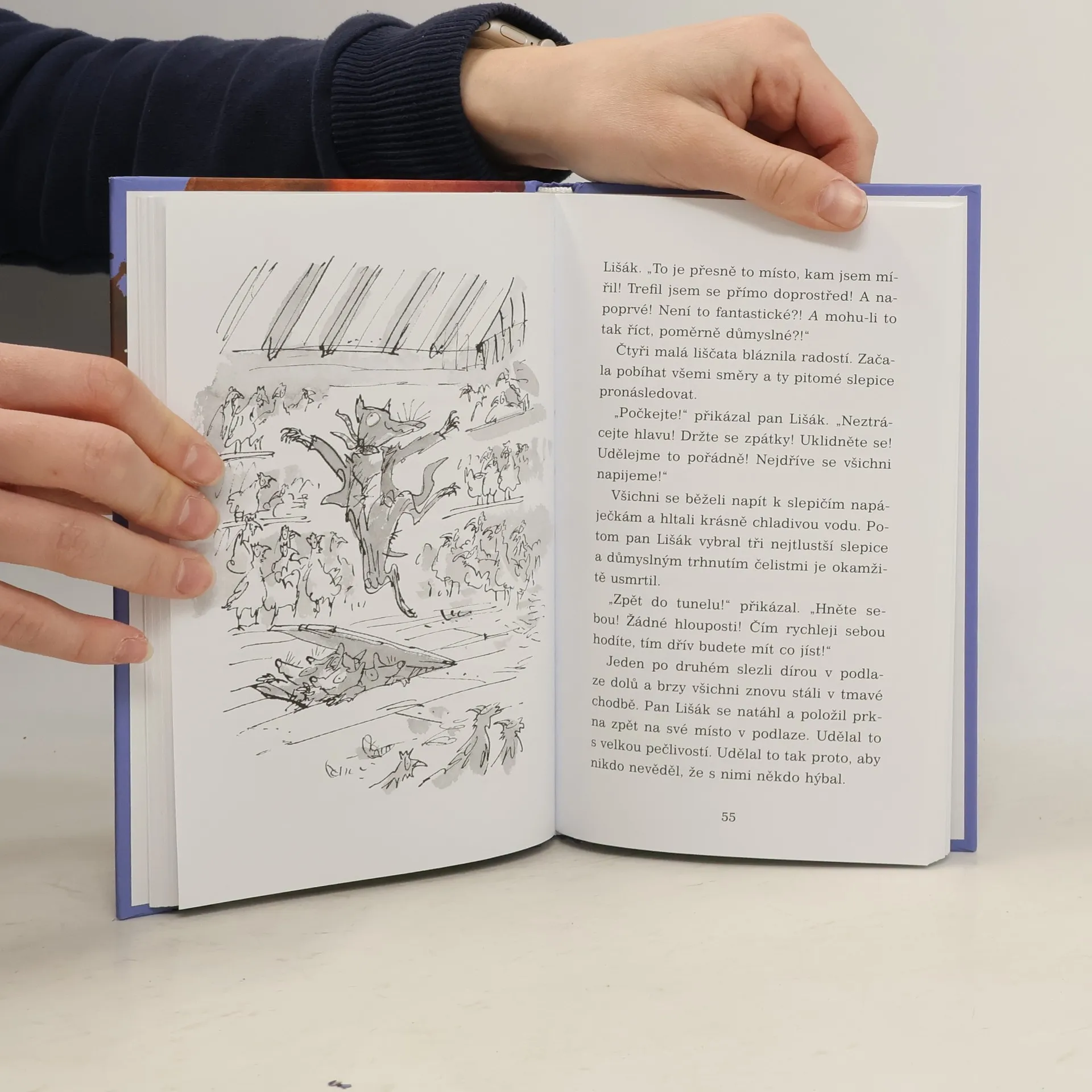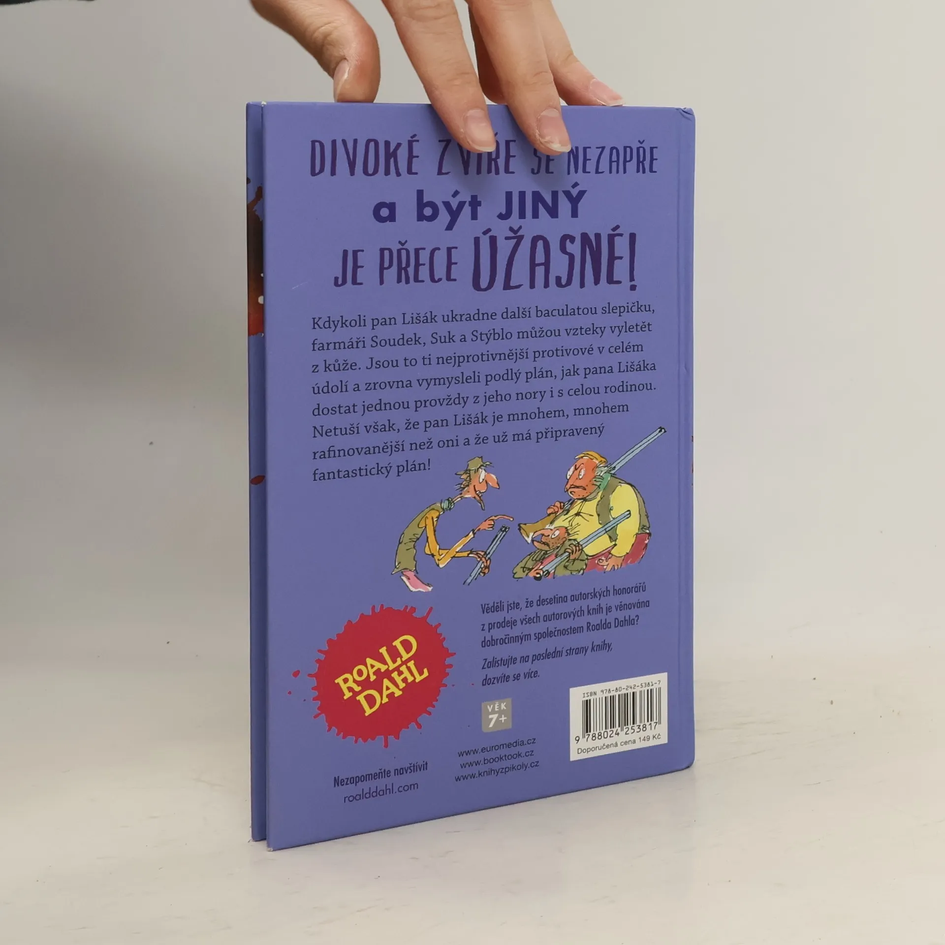 Již klasický příběh o prohnaném panu Lišákovi a jeho rodině, kterého se tři zlí venkované snaží mermomocí vyrýt rypadly z jeho doupěte a který se jim za pomoci dalších zvířecích kamarádů dostane na kobylku, vyšel po celém světě v mnoha vydáních a posloužil jako námět k animovanému filmu. Vypravěčské umění Roalda Dahla, jeho jemná ironie a cit pro detail, jistě potěší všechny jeho příznivce.