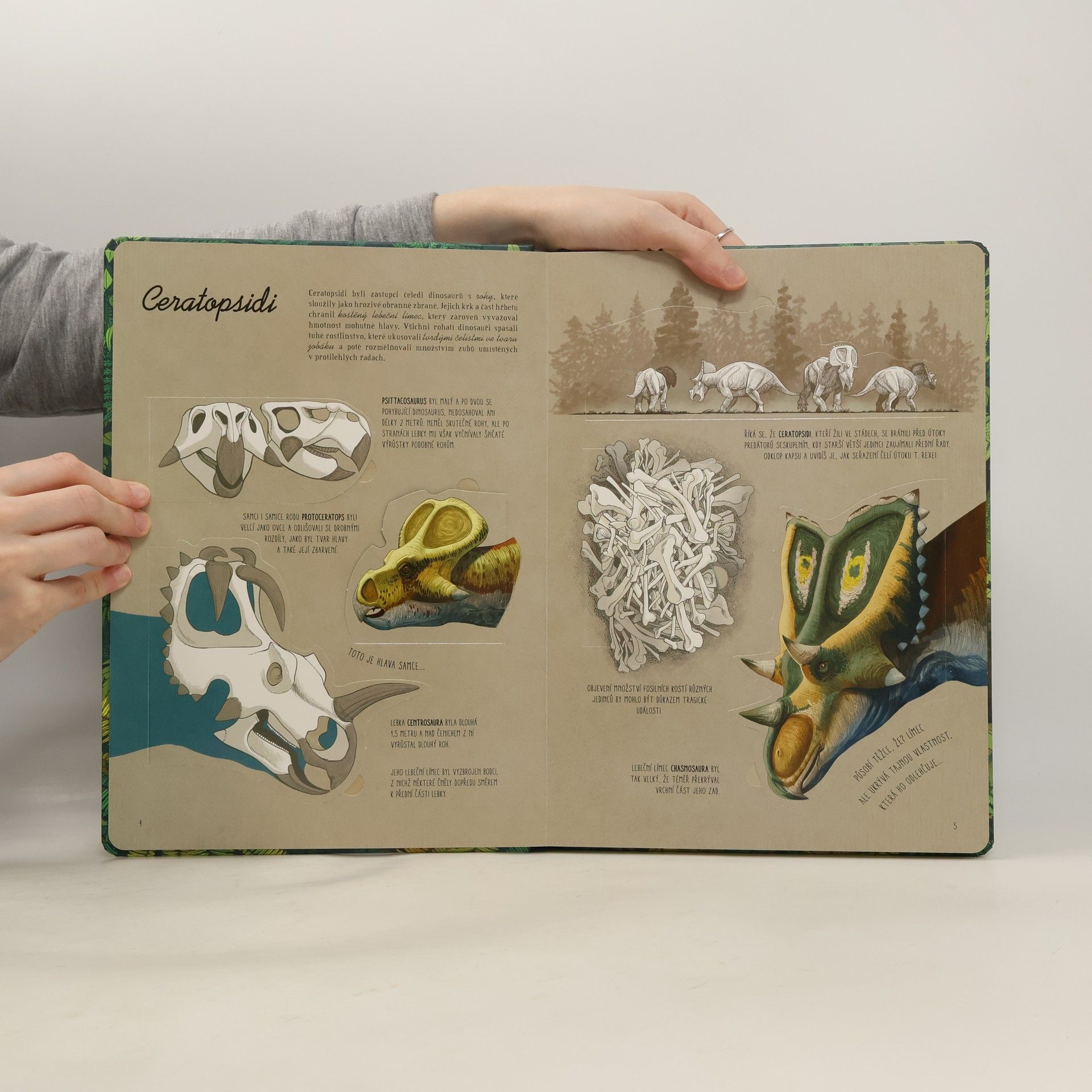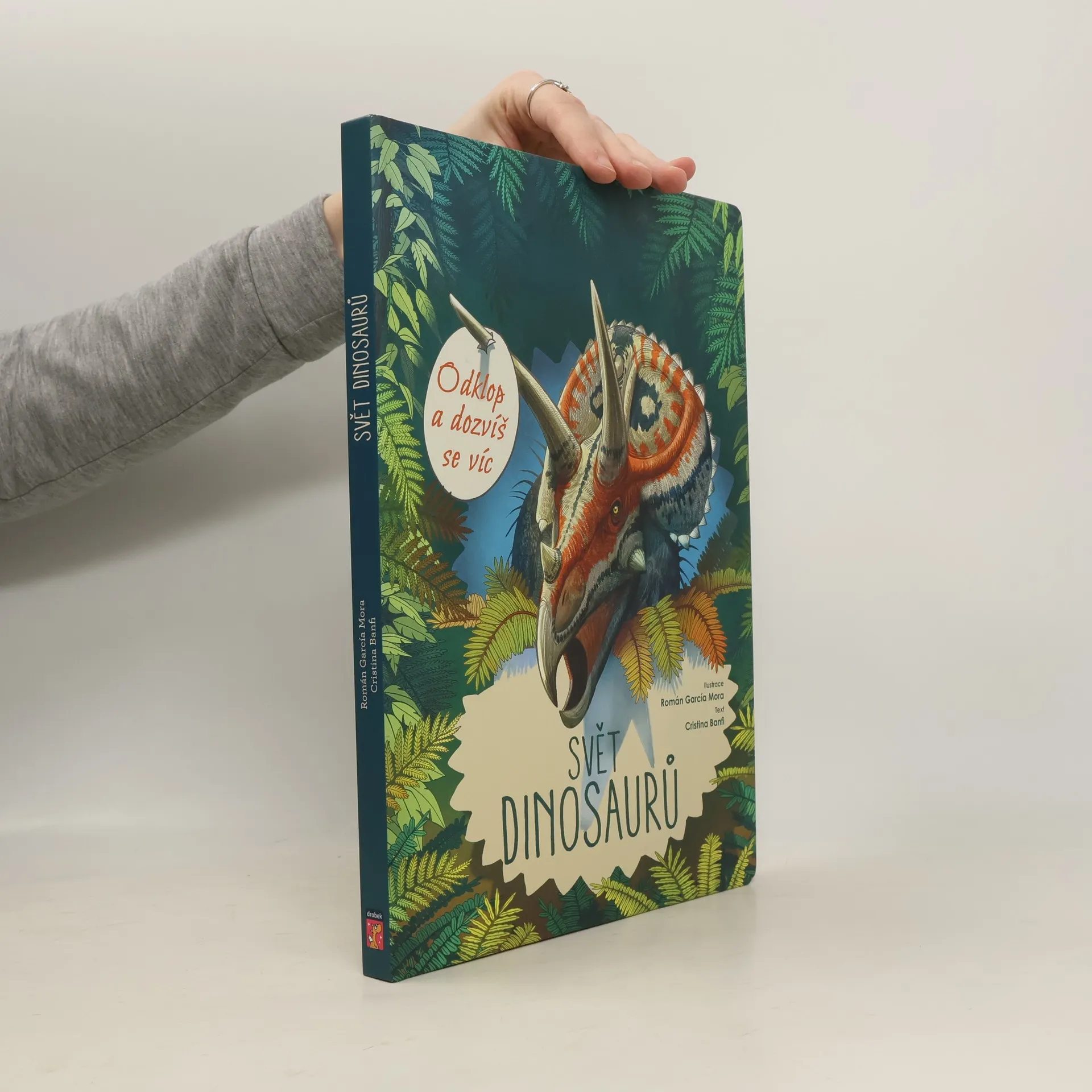 Dinosauři co nevidět vyskočí ze stránek knihy a odhalí ti svá nejúžasnější tajemství. Stačí otevřít okénko a uvidíš! Dinosaury miluje každý a teď se o nich můžeš dozvědět víc – o jejich kůži, kostech, zubech a dalších legendárních rysech. Důkladně prostuduj ty nejoblíbenější druhy včetně Tyrannosaura rexe, triceratopse, Poznej parasaurolofa a jeho hlasové nadání nebo maiasaury, takzvané "dobré matky". Každý dinosaurus je vyobrazený vedle postavy člověka, aby si čtenář udělal obrázek o jeho velikosti.
