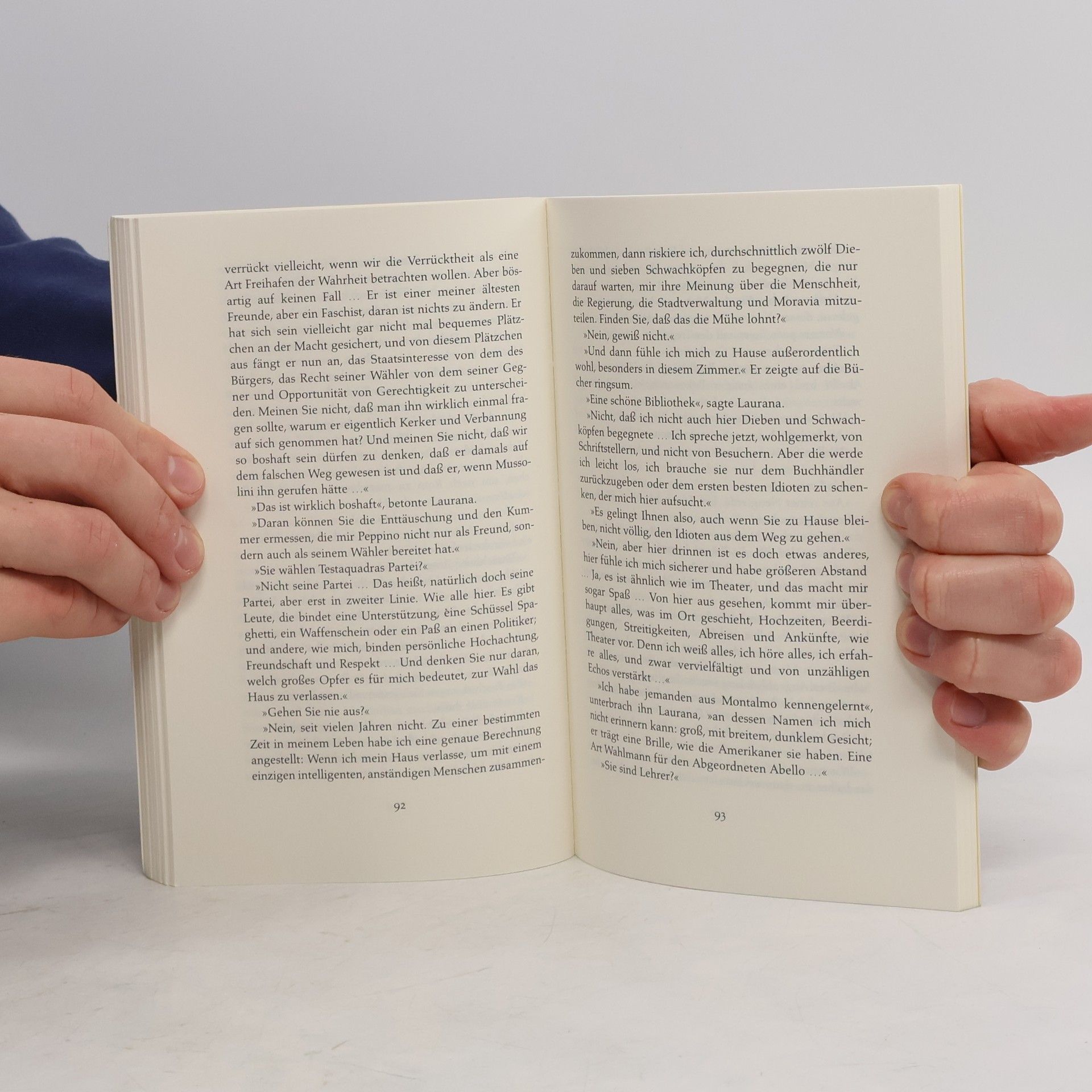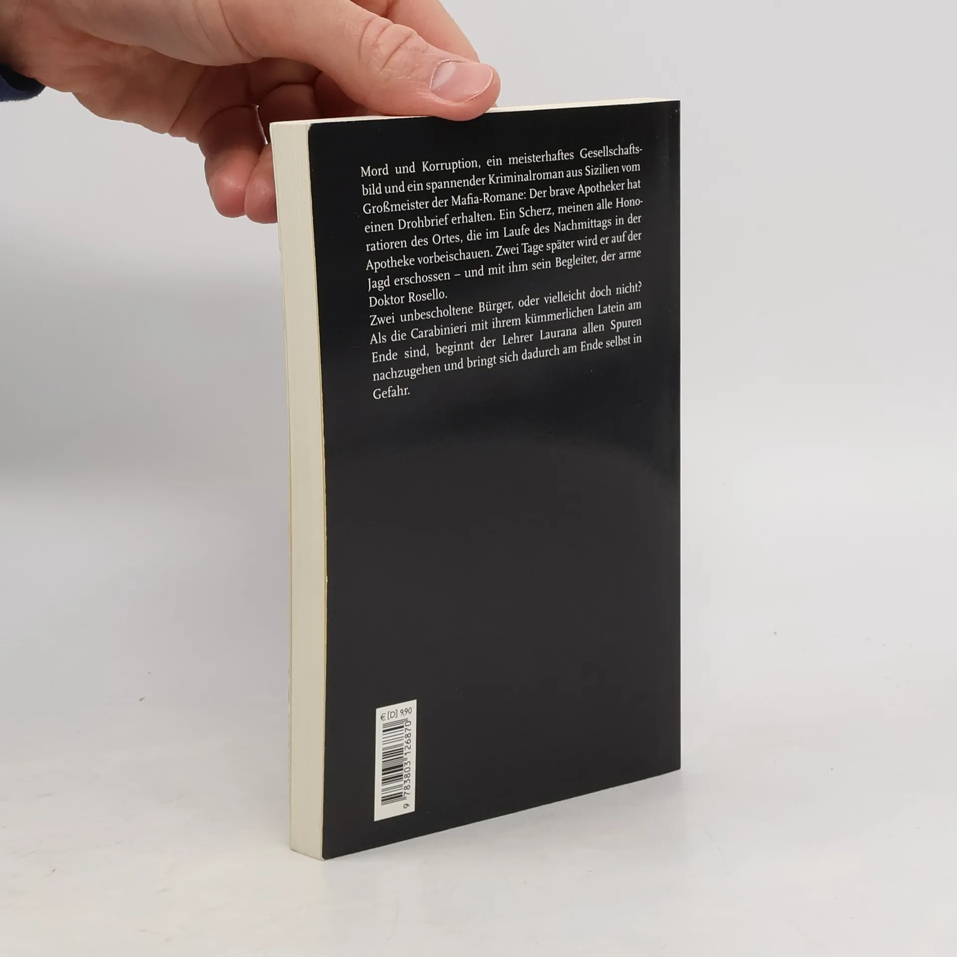 Der brave Apotheker hat einen Drohbrief erhalten. Ein Scherz, meinen alle Honoratioren des Ortes, die im Laufe des Nachmittags in der Apotheke vorbeischauen. Zwei Tage später wird er auf der Jagd erschossen – und mit ihm erwischt es seinen Begleiter, den armen Doktor Rosello. Zwei unbescholtene Bürger, oder wollte vielleicht doch jemand ein heimliches Liebesverhältnis des Apothekers rächen? Die Carabinieri sind bald am Ende mit ihrem kümmerlichen Latein, aber den Lehrer Laurana beginnt die Sache zu interessieren: Ein zufälliger Fund weist zunächst zur Katholischen Kirche. War am Ende doch der Arzt Rosello gemeint? Hatte er etwas Gefährliches entdeckt? Leonardo Sciascia lässt Laurana allen Spuren nachgehen und bringt ihn dadurch am Ende selbst in Gefahr.