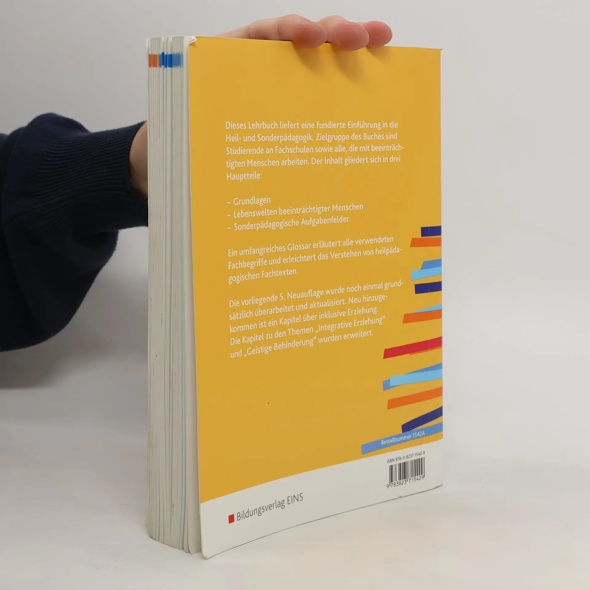 Gibt eine umfassende Einführung in die Heil- und Sonderpädagogikrichtet sich an Studierende an Fachschulen sowie alle, die mit beeinträchtigten Menschen arbeiteninklusive Erläuterungen der Fachbegriffe im GlossarDer Inhalt gliedert sich in 4 Hauptteile: GrundlagenAufgabenbereicheLebenswelten beeinträchtigter MenschenSonderpädagogische AufgabenfelderDie Neuauflage wurde umfassend aktualisiert. Ausführlich wird auf das Thema Inklusion eingegangen. Neu: Kapitel zum Zusammenhang von "Entwicklung und Beeinträchtigung", "Regulationsstörungen" sowie "Zwangs- und Tic-Störungen". Neu strukturiert und erweitert wurden die verschiedenen Formen der Verhaltensstörungen (z.B. selbstverletzendes Verhalten, aggressiv-oppositionelles Verhalten und delinquentes Verhalten). (Quelle: buch.ch).