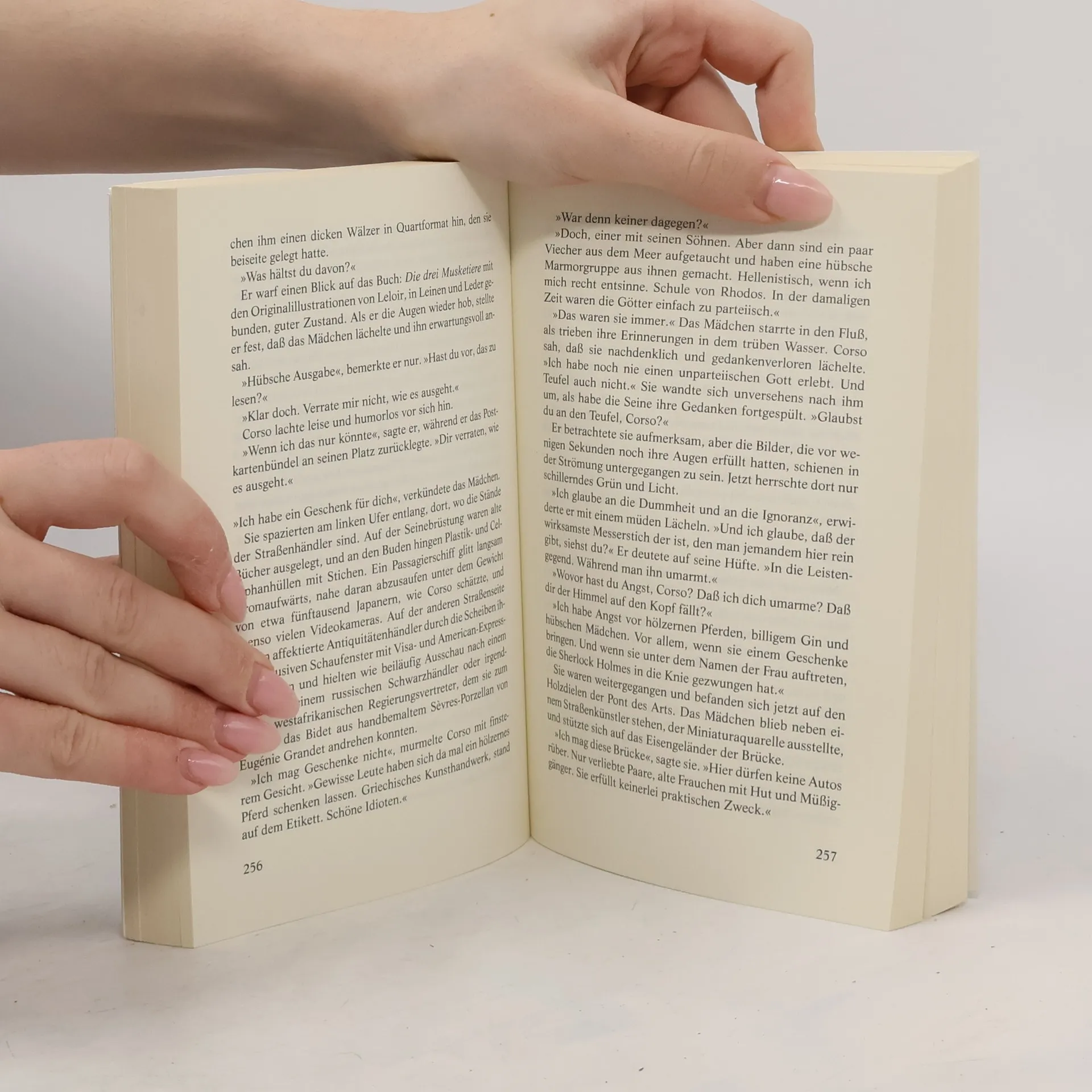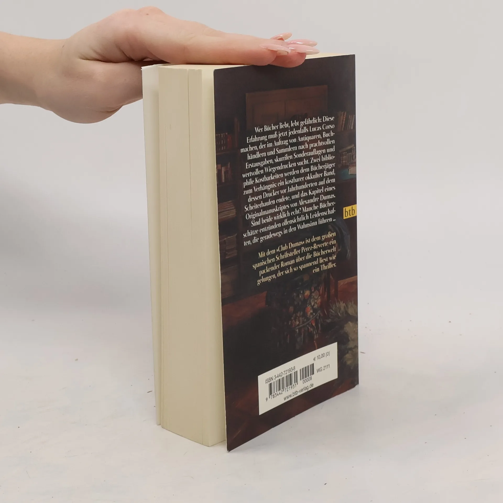 Lucas Corso sucht im Auftrag von Händlern und Sammlern nach seltenen Erstausgaben und prachtvollen Wiegendrucken. Zwei bibliophile Kostbarkeiten werden dem Bücherjäger zum Verhängnis: ein wertvoller okkulter Band, dessen Drucker vor Jahrhunderten auf dem Scheiterhaufen endete, und das Kapitel eines Originalmanuskripts von Alexandre Dumas. Manche Bücherschätze entzünden offensichtlich Leidenschaften, die geradewegs in den Wahnsinn führen...
