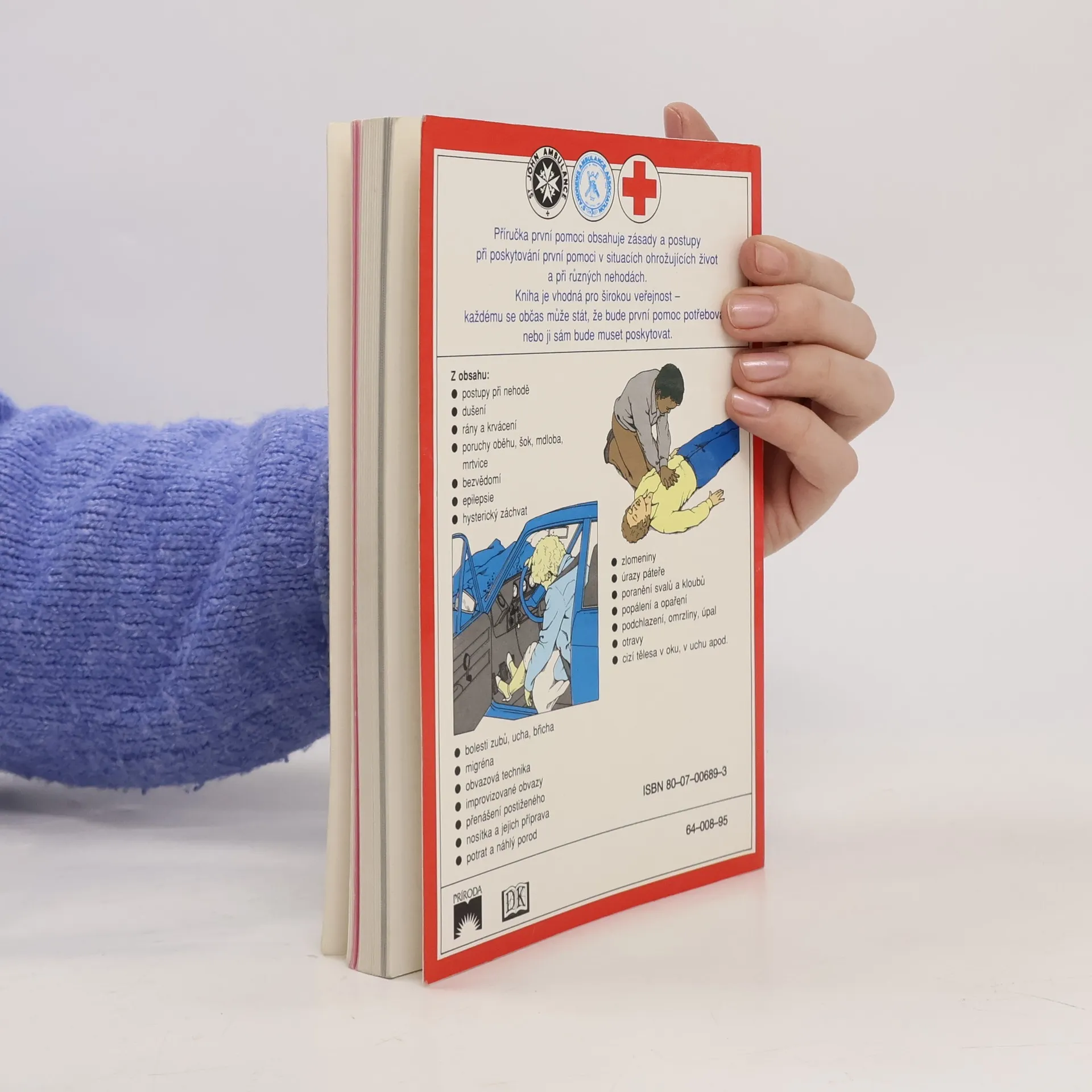 Příručka první pomoci obsahuje zásady a postupy při poskytování první pomoci v situacích ohrožujících život a při různých nehodách. Kniha je vhodná pro širokou veřejnost - každému se občas může stát, že bude první pomoc potřebovat, nebo ji sám bude muset poskytovat.