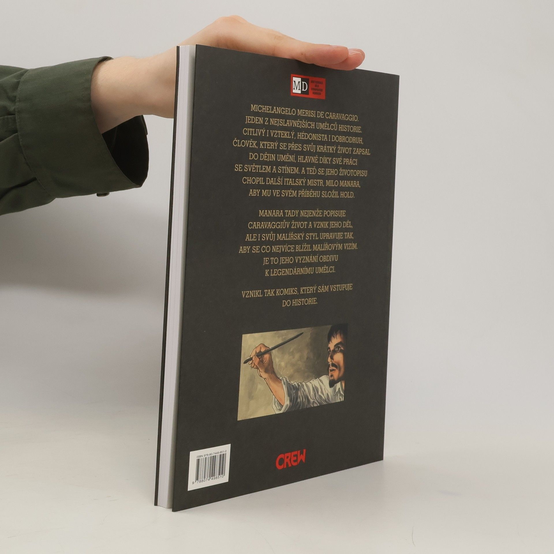 Michelangelo Merisi de Caravaggio. Jeden z nejslavnějších umělců historie. Citlivý i vzteklý, hedonista i dobrodruh, člověk, který se přes svůj krátký život zapsal do dějin umění, hlavně díky své práci se světlem a stínem. A teď se do jeho života pustil další italský mistr, Milo Manara, aby mu ve svém příběhu složil hold. Manara tady nejenže popisuje Caravaggiům život a vznik jeho děl, ale i svůj malířský styl upravuje tak, aby se to co nejvíce blížilo malířovým vizím. Vznikl tak komiks, který sám vstupuje do historie. Vychází vázaná a brožovaná s chlopněmi.