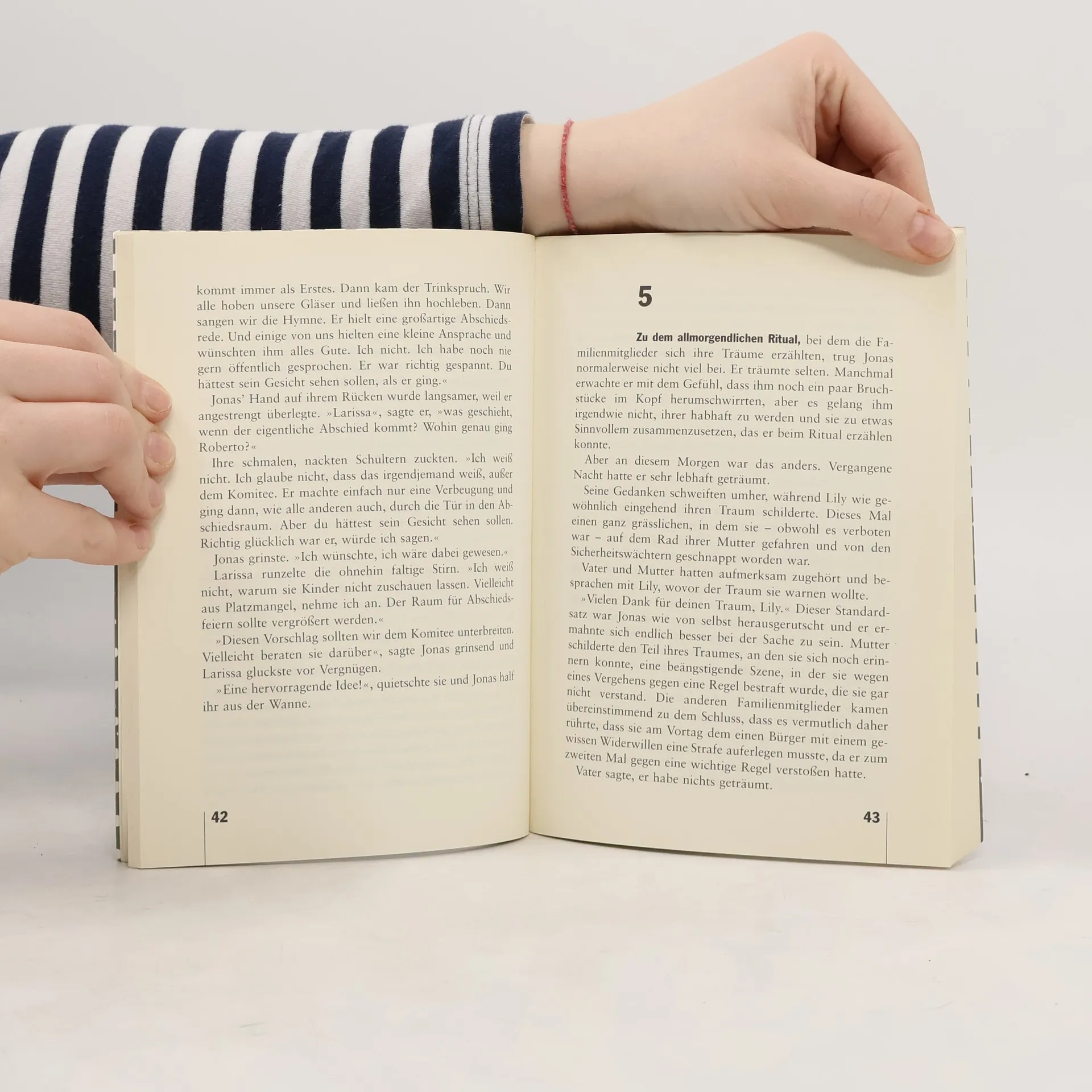 Jonas lebt in einer Welt, in der es keine Kriege mehr gibt, keine Verbrechen und keine Angst mehr. Jeder lebt wohlbehütet ein bis ins kleinste geregeltes Leben. Alle sind glücklich und zufrieden. Nun lernt Jonas im Zuge seiner Ausbildung zum "Hüter der Erinnerung" die Lebensform seiner Vorfahren kennen, hört von Tod, Gewalt, Schmerz, aber auch von Freundschaft und Liebe. Plötzlich hat er Zweifel, ob die Entscheidung, Selbstbestimmung, Freiheit und Gefühle zugunsten von Sicherheit, Zweckmäßigkeit und Schmerzfreiheit aufzugeben, richtig war... Eine äußerst spannende Zukunftsvision.