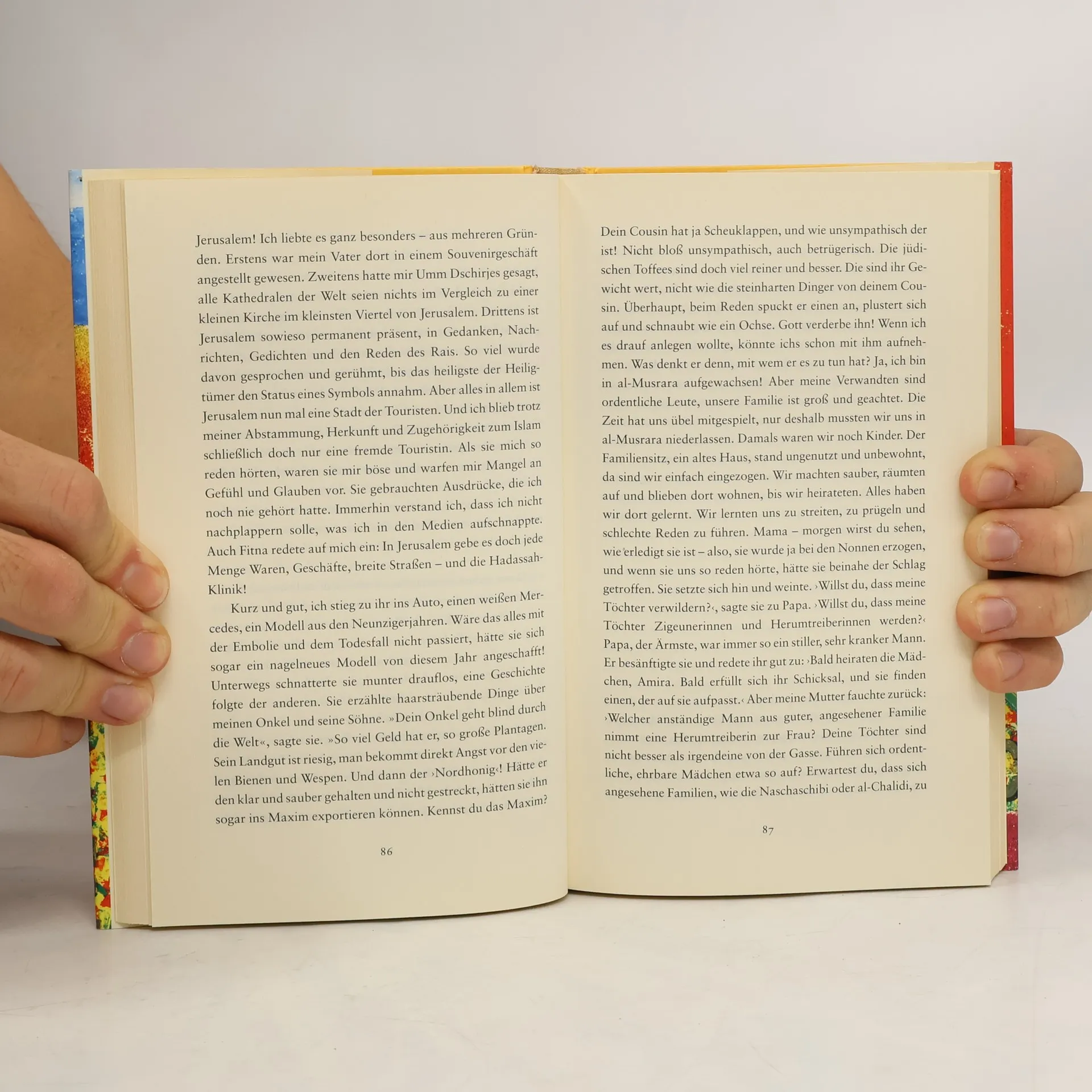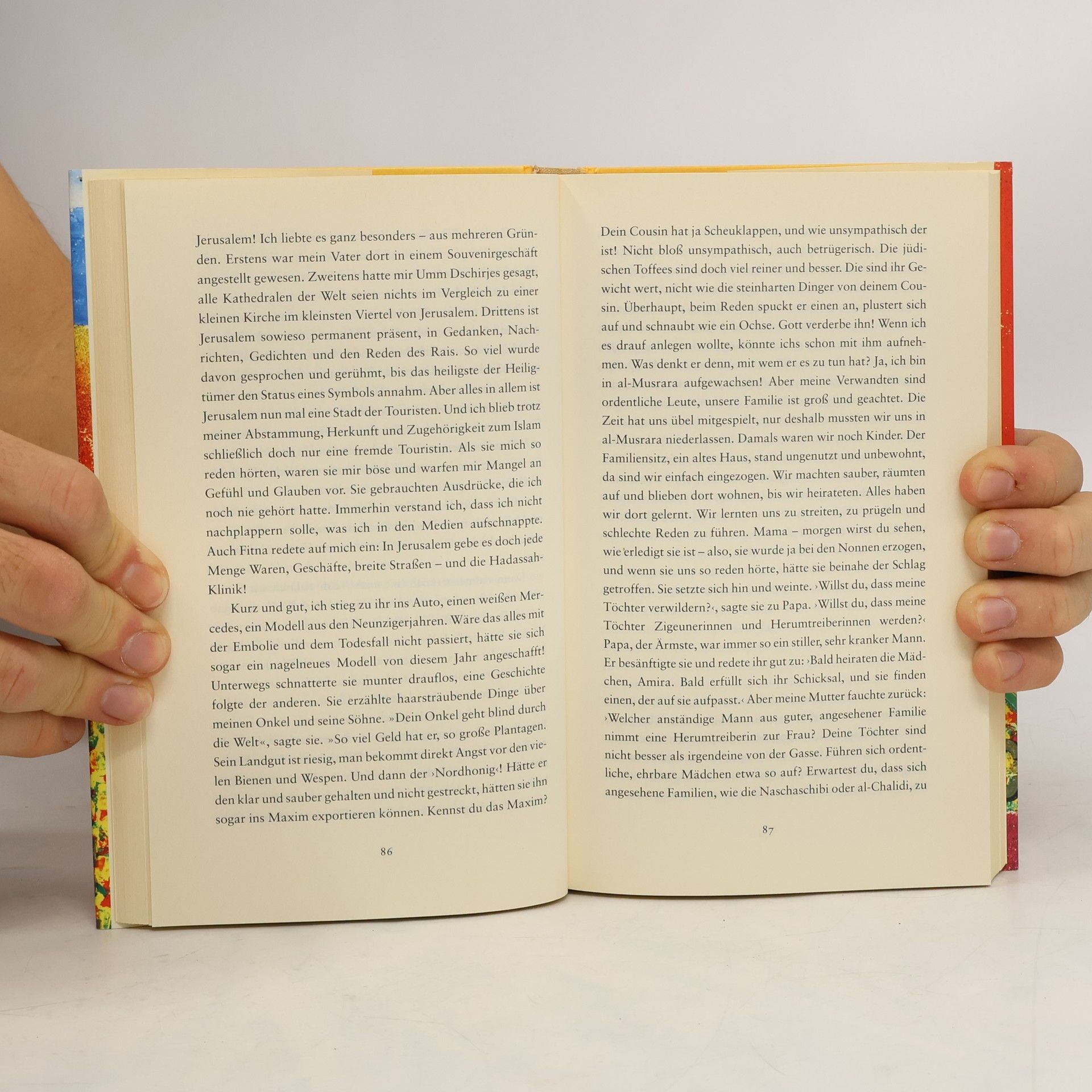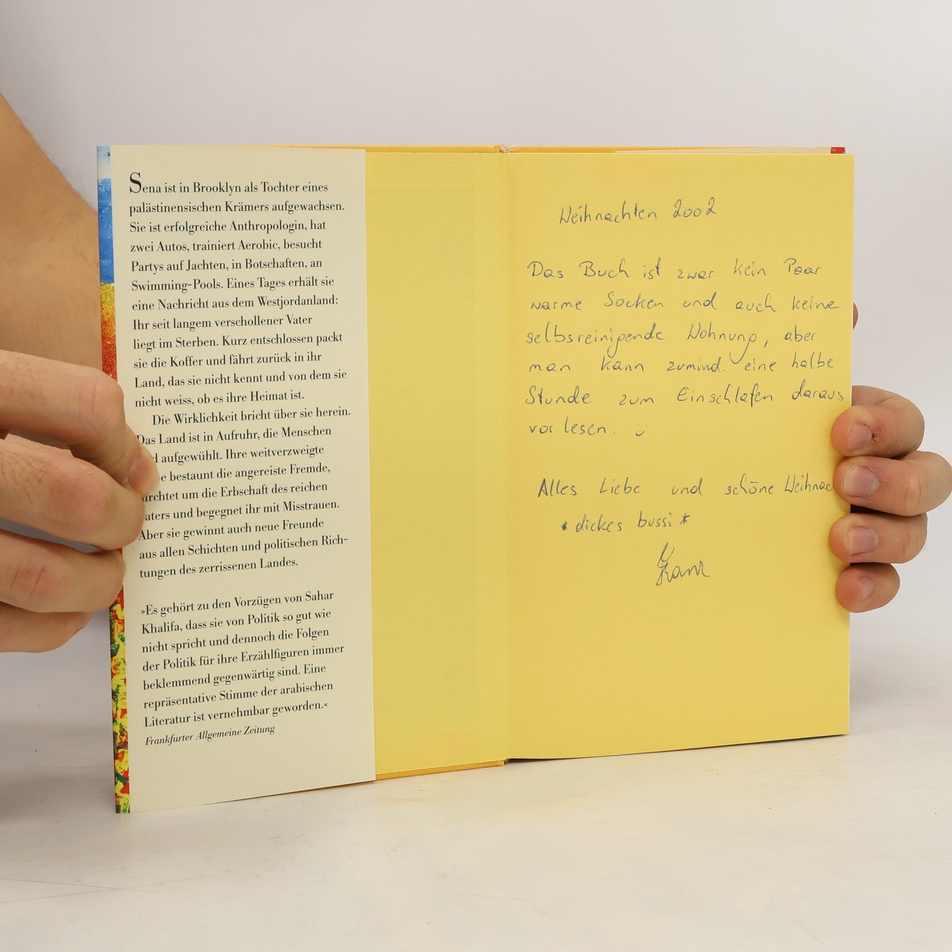 Sena ist in Brooklyn als Tochter eines palästinensischen Krämers aufgewachsen. Sie ist erfolgreiche Anthropologin, hat zwei Autos, trainiert Aerobic, besucht Partys auf Jachten, in Botschaften, an Swimming-Pools. Eines Tages erhält sie eine Nachricht aus dem Westjordanland: Ihr seit langem verschollener Vater liegt im Sterben. Kurz entschlossen packt sie die Koffer und fährt zurück in ihr Land, das sie nicht kennt und von dem sie nicht weiß, ob es ihre Heimat ist. Die Wirklichkeit bricht über sie herein. Das Land ist in Aufruhr, die Menschen sind aufgewühlt. Ihre weitverzweigte Sippe bestaunt die angereiste Fremde, fürchtet um die Erbschaft des reichen Vaters.