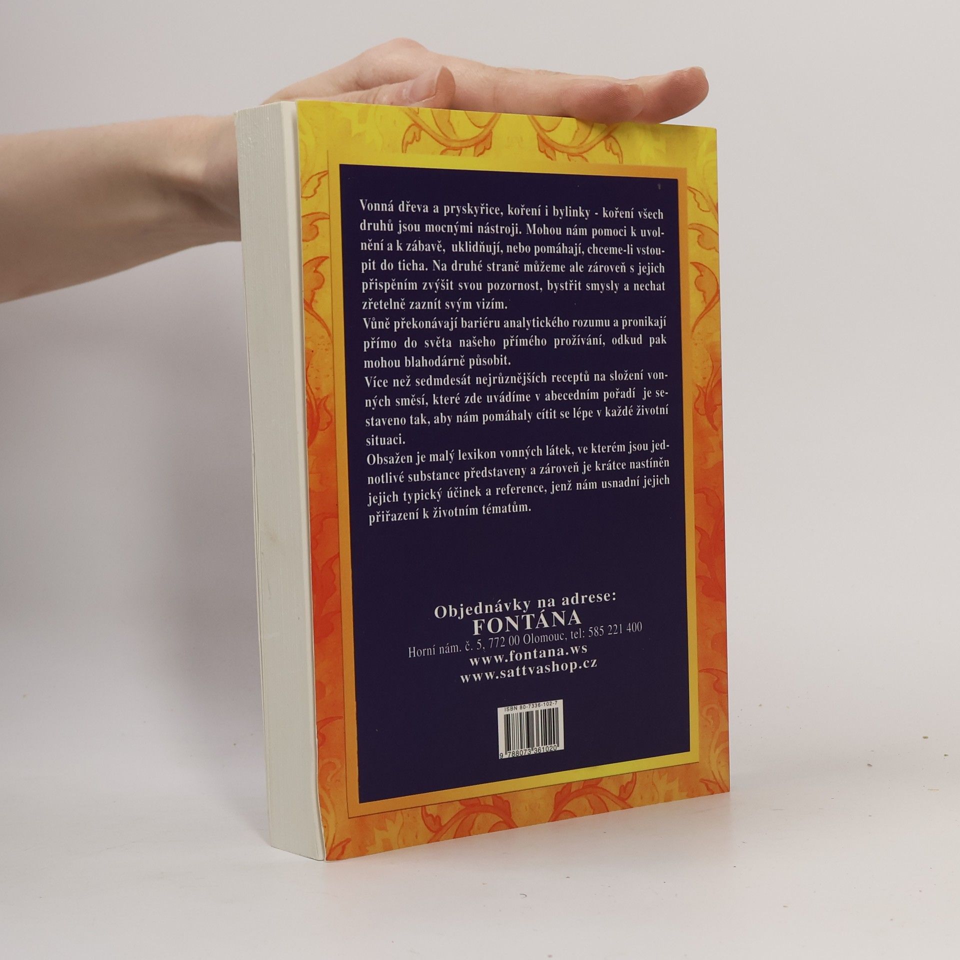 Vonná dřeva a pryskyřice, koření i bylinky - kuření všech druhů jsou mocnými nástroji. Mohou nám pomoci k uvolnění a k zábavě, uklidňují, nebo pomáhají, chceme-li vstoupit do ticha. Na druhé straně můžeme ale zároveň s jejich přispěním zvýšit svou pozornost, bystřit smysly a nechatzřetelně zaznít svým vizím. Obsažen je malý lexikon vonných látek, ve kterém jsou jednotlivé substance představeny a zároveň je krátce nastíněn jejich typický účinek a reference, jenž nám usnadní jejich přiřazení k životním tématům.