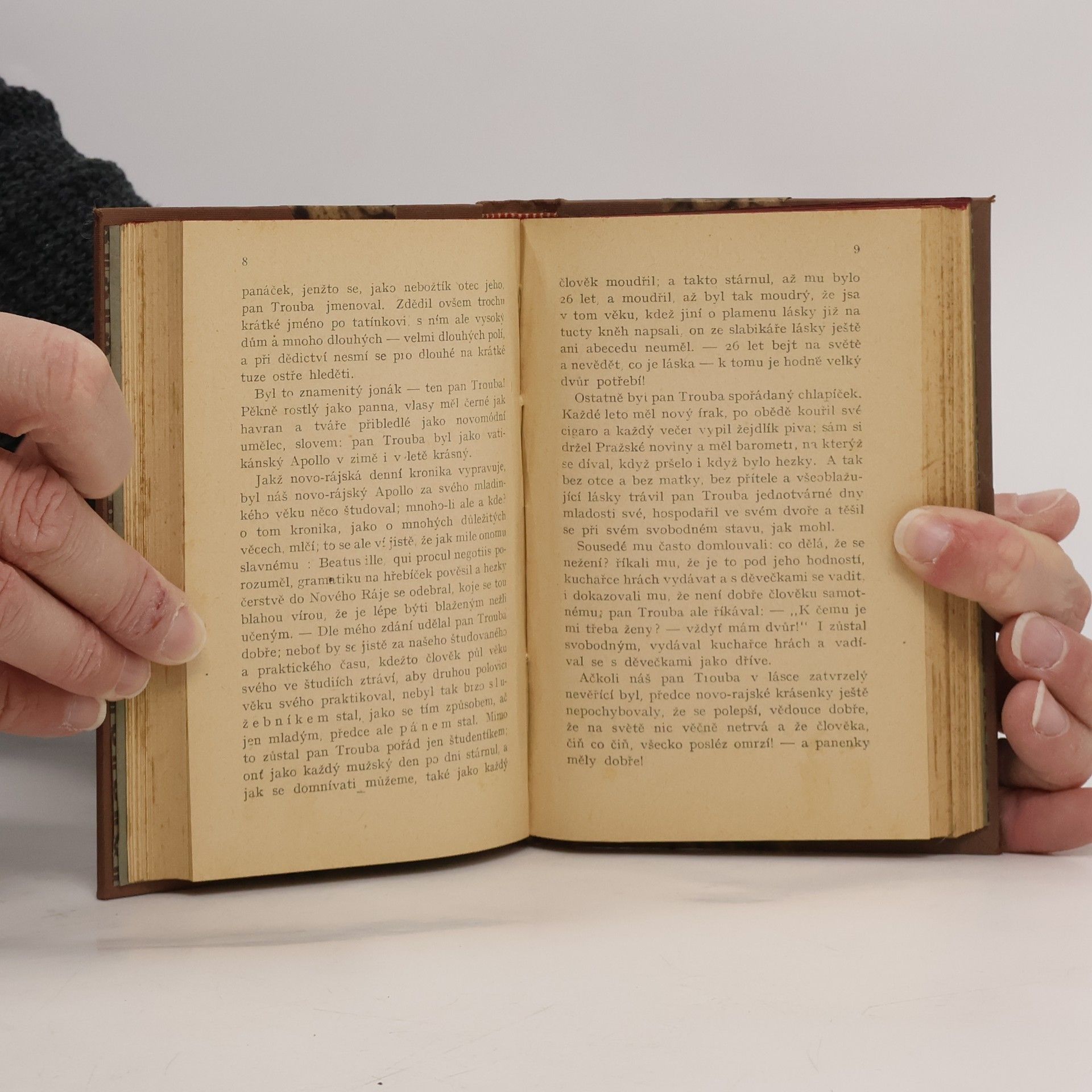Humoreska obrozenského autora líčí satirickou formou příběh pražského advokátního úředníka, který se vydá na venkov čerpat látku pro novelu a přitom se stává vtipným pozorovatelem života první poloviny 19. století.