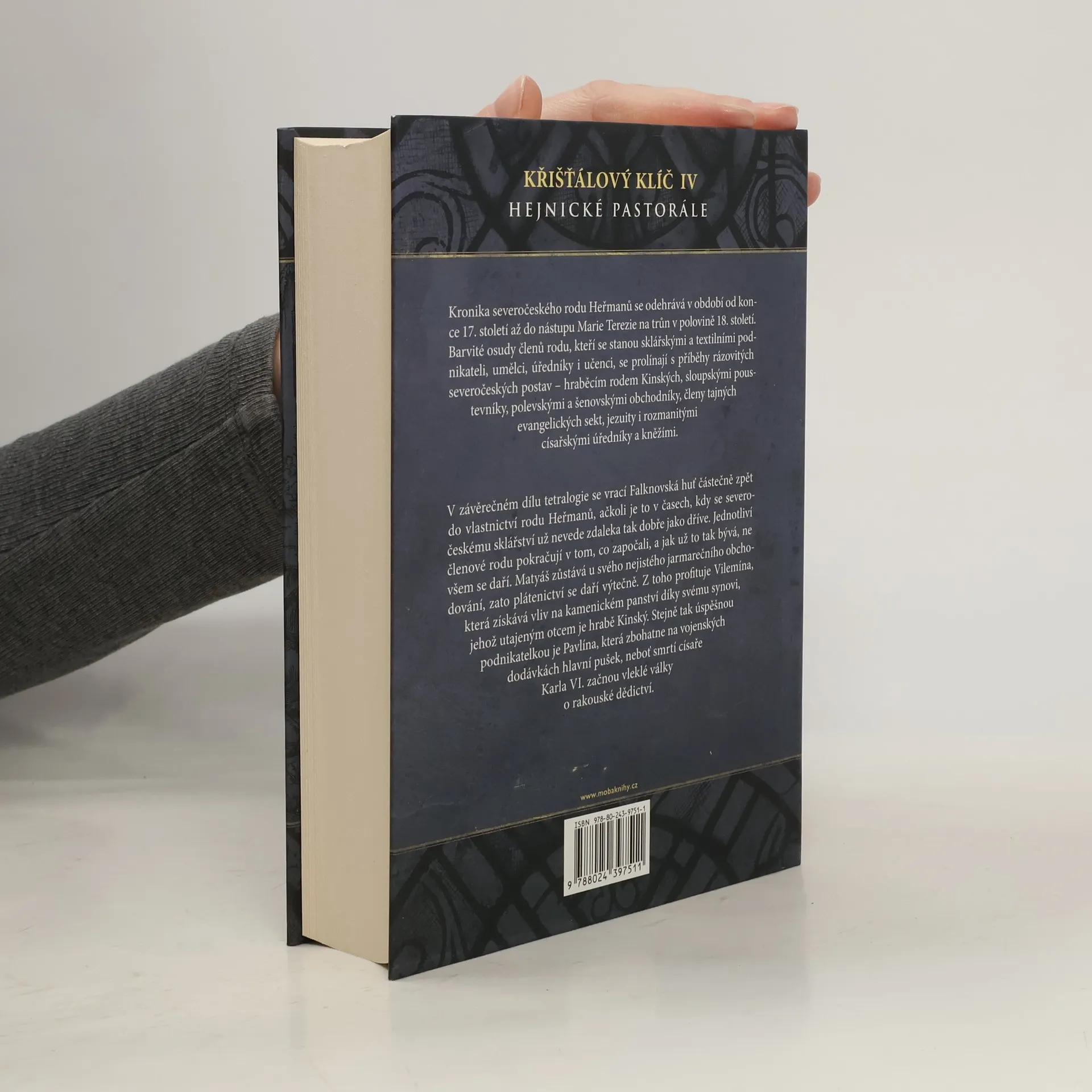 V závěrečném dílu tetralogie se vrací Falknovská huť částečně zpět do vlastnictví rodu Heřmanů, ačkoli je to v časech, kdy se severočeskému sklářství už nevede zdaleka tak dobře jako dříve. Jednotliví členové rodu pokračují v tom, co započali, a jak už to tak bývá, ne všem se daří. Matyáš zůstává u svého jarmarečního obchodování, zato plátenictví se daří výtečně. Z toho profituje Vilemína, která získává vliv na kamenickém panství díky svému synovi, jehož utajeným otcem je hrabě Kinský. Stejně tak úspěšnou podnikatelkou je Pavlína, která zbohatne na vojenských dodávkách hlavní pušek, neboť smrtí císaře Karla VI. začnou vleklé války o rakouské dědictví. To je ožehavá záležitost pro nejstaršího muže rodu Johanna, který se musí jako panský úředník rozhodovat mezi vrchností a svou rodinou...