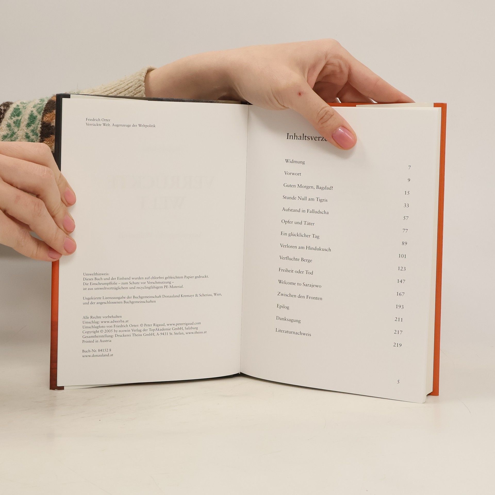 Seit dreißig Jahren ist Friedrich Orter in Krisen- und Kriegsgebieten unterwegs. Es sind Reisen zu Menschen, die mit Elend und Gewalt konfrontiert sind. Begegnungen mit kleinen Helden und großen Gaunern, mit Helfern und Gaffern, mit Opfern und Henkern – tragisch und komisch, hoffnungslos und zuversichtlich, voll Zweifel und vagem Optimismus. Die Auseinandersetzung mit fremdem Leid in den Balkankriegen, im Afghanistan- und Irakkrieg, mit Flüchtlingsströmen und Obdachlosen – diese Reisen durch Kriege und Krisen führen den Beobachter und Berichterstatter zur Schlussfolgerung, dass er oft in einer verrückten Welt unterwegs ist.