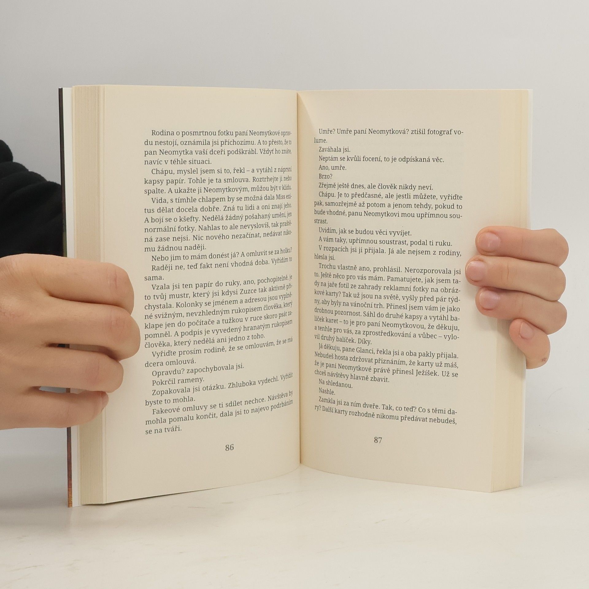Nový román známého publicisty a spisovatele Aleše Palána zavádí čtenáře do prostředí domácího hospice. Ema, pracovnice domácího hospicu, který poskytuje péči umírajícím klientům v jejich domovech, zažívá během jediného dne několik zásadních životních zvratů. Po rozchodu se svým přítelem míří neplánovaně k umírající klientce paní Neomytkové a jejímu psychicky labilnímu synu Borisovi. Stará paní není jen pacientka, ale zná také tajemství propojující obě rodiny, které Emě až doposud zůstávalo skryté. Mladou ženu zaměstnává nejen starost o umírající, v patách je jí neustále studentka Zuzana, která si jako místo svého studijního projektu vybrala právě domácí hospic a jeho klienty. Ani Boris není Emě v péči o matku nápomocný, zvlášť když odejde z domu, a místo něj se přede dveřmi objeví policie… Aleš Palán citlivě zachycuje situace kolem odchodu nevyléčitelně nemocného člověka, poutavě a do hloubky odkrývá psychiku ženy procházející náročným životním obdobím a zároveň vedle existenciálních problémů odkrývá i ty celospolečenské, jako je dědictví komunismu či privatizace a „podnikání“ v devadesátých letech.