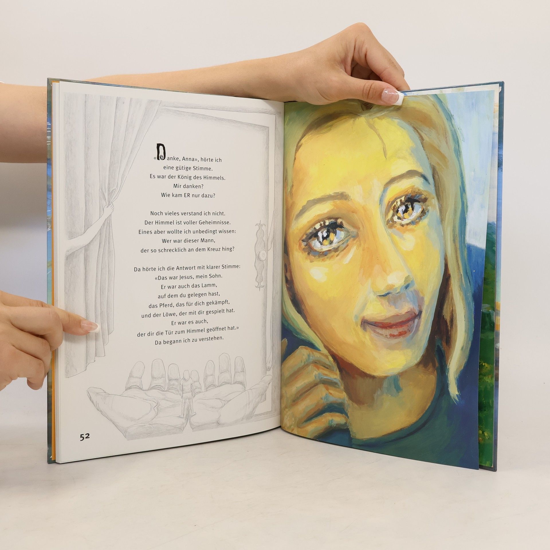 'Bitte, Gott, zeig mir den Himmel', sagt Anna leise, und dann öffnet sich die Tür nach oben. Anna entdeckt den Himmel und nimmt den Leser gleich mit. In spannenden Begegnungen lernt sie immer mehr den 'König des Himmels' kennen – in seiner Herrlichkeit und Kraft, sowie in seiner Liebe und seinem Herz für die Verlorenen. Die sehr eindrücklichen Illustrationen der Autorin nehmen den Leser mit hinein in das dramatische Geschehen. Ein Bilderbuch für alle, die auch das himmlische Königreich und seine Geheimnisse entdecken möchten. Gebunden, mit vierfarbigen und schwarzweissen Illustrationen. Bilderbuch für Kinder (ab ca. 5 Jahren) und Erwachsene.