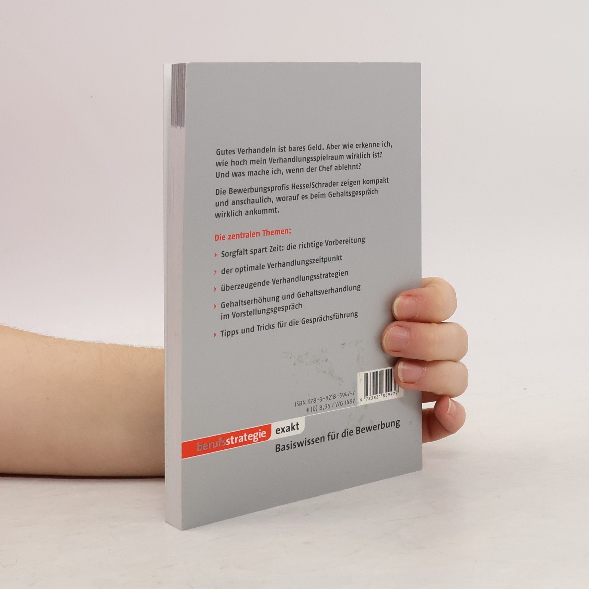 Gutes Verhandeln ist bares Geld. Aber wie erkenne ich, wie hoch mein Verhandlungsspielraum wirklich ist? Und was mache ich, wenn der Chef ablehnt? Die Bewerbungsprofis Hesse/Schrader zeigen kompakt und anschaulich, worauf es beim Gehaltsgespräch wirklich ankommt. Die zentralen Themen:• Sorgfalt spart Zeit; die richtige Vorbereitung• der optimale Verhandlungszeitpunkt• überzeugende Verhandlungsstrategien• Gehaltserhöhung und Gehaltsverhandlung im Vorstellungsgespräch• Tipps und Tricks für die Gesprächsführung NEU: Jetzt auch als E-Book im iTunes-Shop bzw. im Kindle-Bookstore.
