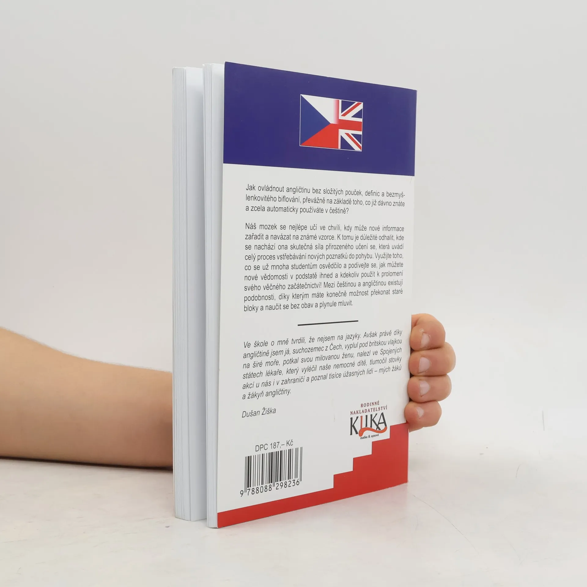 Jak ovládnout angličtinu bez složitých pouček, definic a bezmyš lenkovitého biflování, převážně na základě toho, co již dávno znáte a zcela automaticky používáte v češtině? Náš mozek se nejlépe učí ve chvíli, kdy může nové informace zařadit a navázat na známé vzorce. K tomu je důležité odhalit, kde se nachází ona skutečná síla přirozeného učení se, která uvádí celý proces vstřebávání nových poznatků do pohybu. Využijte toho, co se už mnoha studentům osvědčilo a podívejte se, jak můžete nové vědomosti v podstatě ihned a kdekoliv použít k prolomení svého věčného začátečnictví! Mezi češtinou a angličtinou existují podobnosti, díky kterým máte konečně možnost překonat staré bloky a naučit se bez obav a plynule mluvit. ※ Ve škole o mně tvrdili, že nejsem na jazyky. Avšak právě díky angličtině jsem já, suchozemec z Čech, vyplul pod britskou vlajkou na širé moře, potkal svou milovanou ženu, nalezl ve Spojených státech lékaře, který vyléčil naše nemocné dítě, tlumočil stovky akcí u nás i v zahraničí a poznal tisíce úžasných lidí – mých žáků a žákyň angličtiny. Dušan Žiška