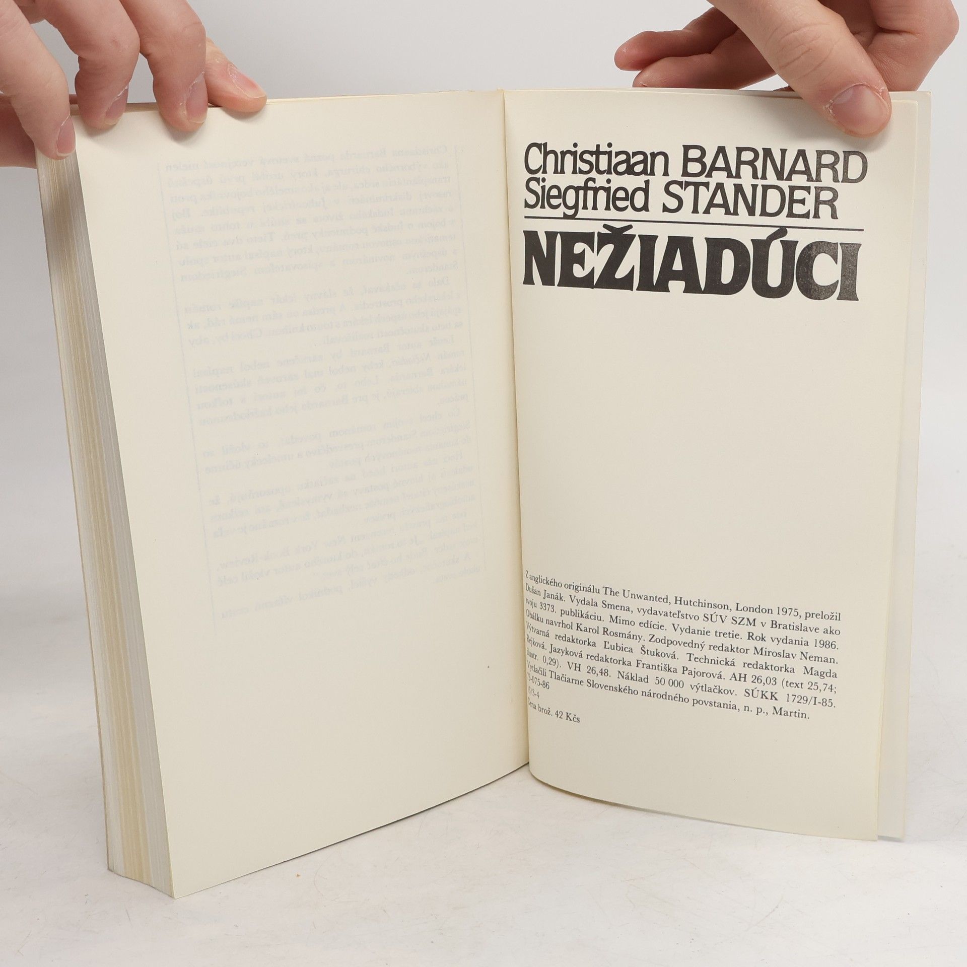 Christiaana Barnarda pozná svetová verejnosť nielen ako znamenitého chirurga, ktorý urobil prvú úspešnú transplantáciu srdca, ale aj ako smelého bojovníka proti rasovej diskriminácii v Juhoafrickej republike. Boj o záchranu ľudského života sa snúbi u tohto muža s bojom o ľudské podmienky preň. Tieto dva ciele sú tematickou osnovou románu, ktorý napísal autor spolu s úspešným novinárom a spisovateľom Siegfriedom Standerom. Dalo sa očakávať, že slávny lekár napíše román z lekárskeho prostredia. A predsa on sám nemá rád, ak spájajú jeho úspech lekára s touto knihou. Chcel by, aby sa tieto skutočnosti rozlišovali. Lenže autor Barnard by zaručene nebol napísal román Nežiadúci, keby nebol mal zároveň skúsenosti lekára Barnarda. Lebo to, čo iní autori s toľkou námahou zbierajú, je pre Barnarda jeho každodennou prácou. Čo chcel svojím románom povedať, to vložil so Siegfriedom Standerom presvedčivo a umelecky účinne do konania románových postáv. Hoci nás autori hneď na začiatku upozorňujú, že udalosti aj hlavné postavy sú vymyslené, ani celkom neskúsený čitateľ nemôže nezbadať, že v románe je veľa autobiografických prvkov. Iste má pravdu recenzent New York Book-Review, keď napísal: „Je to román plný srdca. Bude ho čítať celý svet. " A skutočne, odkedy vyšiel, podnikol víťaznú cestu okolo sveta.