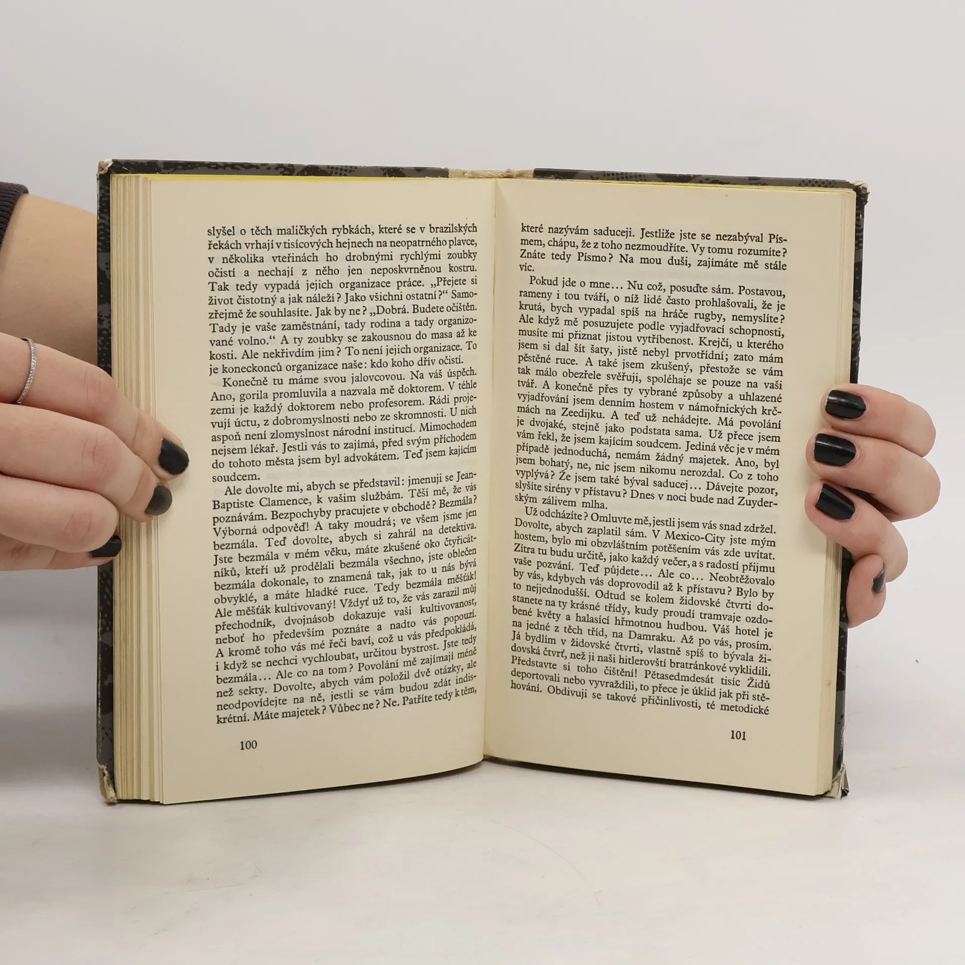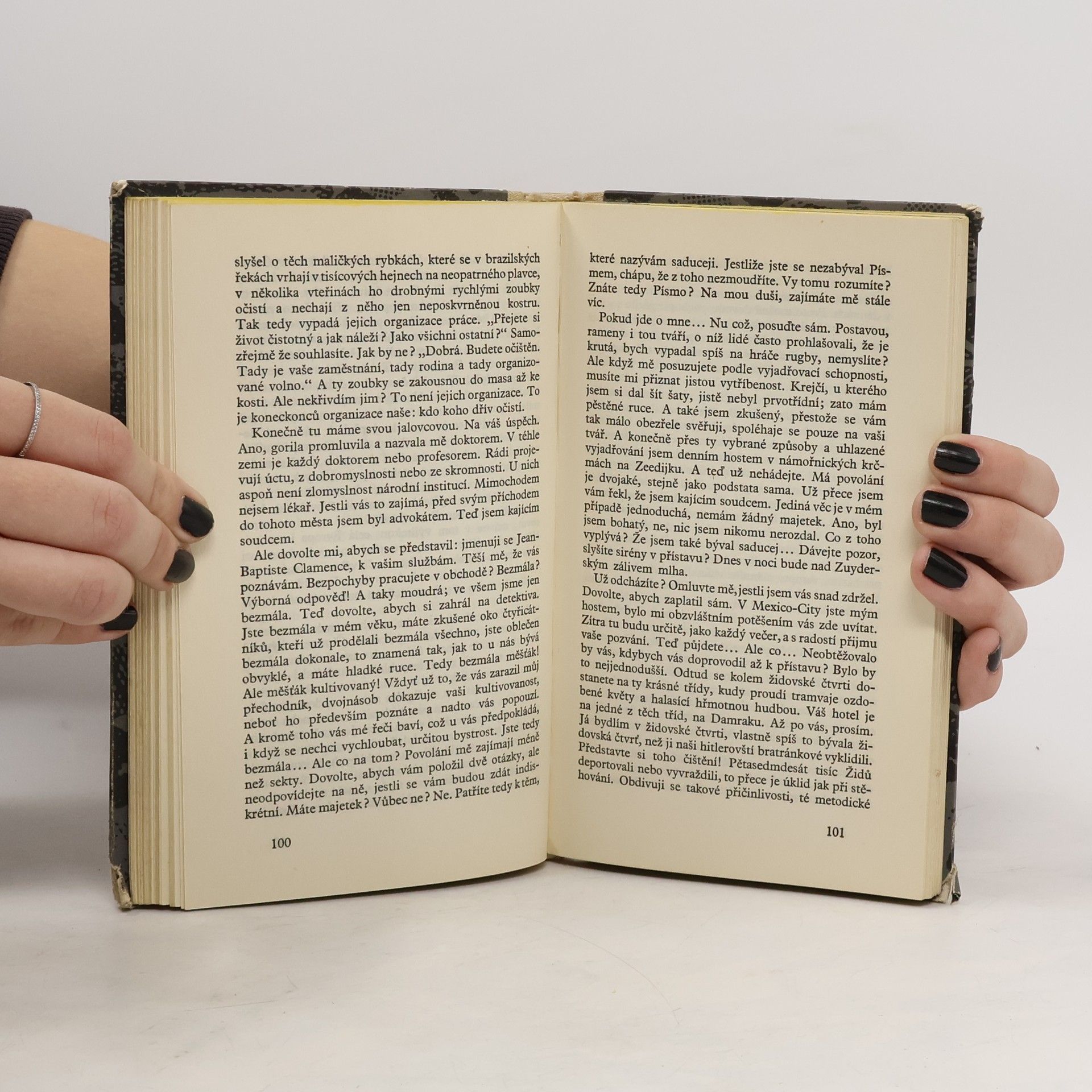 Cizinec (1942) – Z deníku Alberta Camuse: „Vypravování. Člověk, který se nechce ospravedlnit. Představa, kterou si o něm udělají, se mu líbí. Zemře s vědomím vlastní pravdy. Zbytečnost této útěchy.“ Pád (1956) – J. B. Clamence (Jean Baptiste – Jan Křtitel!) nesnáší pocit být souzen, proto obviňuje sám sebe a před náhodnými hosty v baru opakuje svůj vlastní proces. Hrdinové obou knih jsou značně rozdílní. Hlavní postava Cizince Meursault je některými kritiky považován za nadměrně mlčenlivého, má až schizofrenické rysy mutismu, zato Clamence, ústřední vypravěč Pádu, hlas volající z pouště, toť úplné obžerství slov. Mluví a mluví a mluví a tak se mu daří znamenitý trik: čím více toho napovídá, čím více toho nasvěřuje, tím více nám uniká, tím méně o něm víme. Nad Meursaultem i nad Clamencem se vznášejí záhady: přes všechnu jasnost čemusi stále nerozumíme, něco se skrývá jak za clonou mlčení Meursaulta, tak za clonou slov Clamence. Vzrušující tím, co už si do nich musíme vkládat sami.