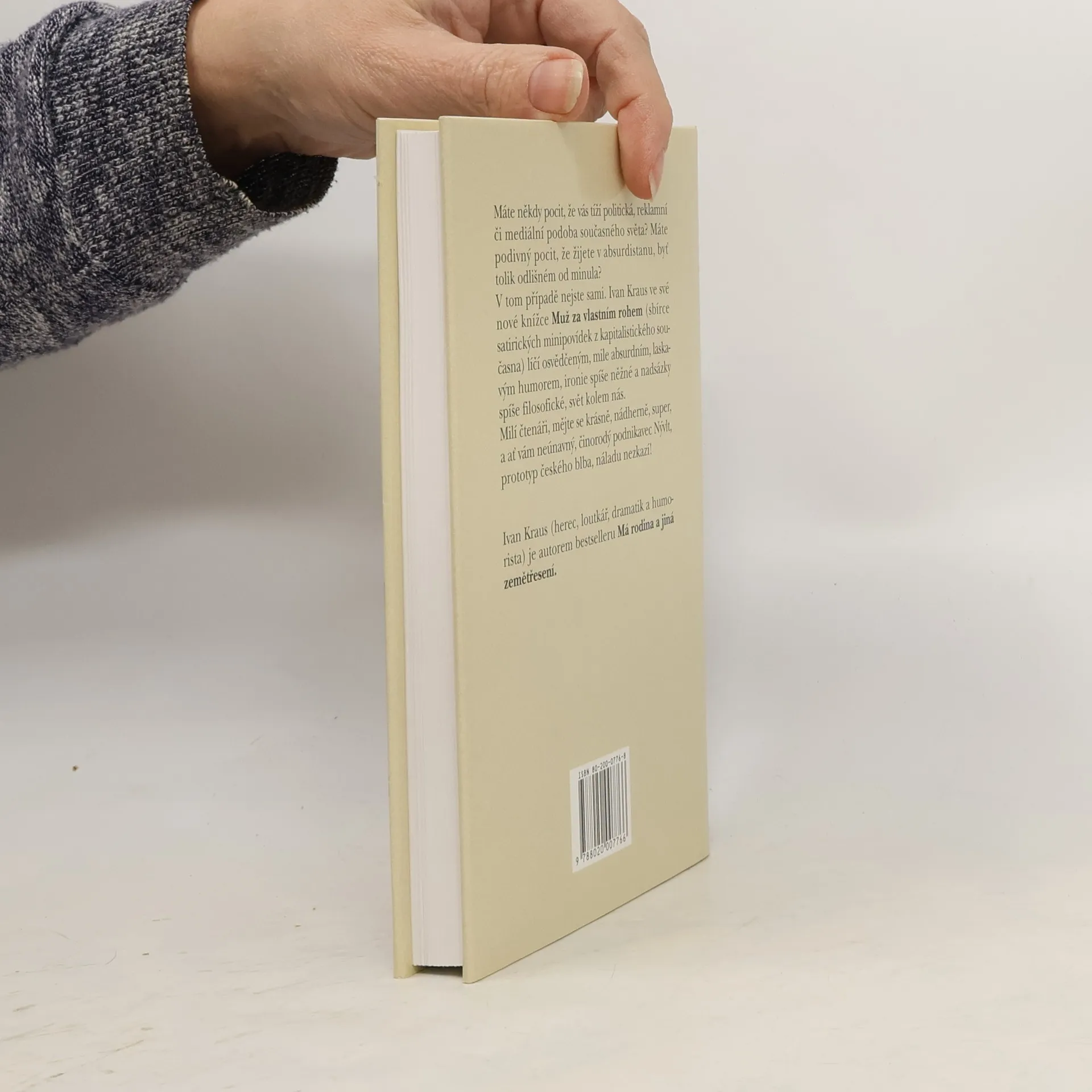 Máte někdy pocit, že vás tíží politická, reklamní či mediální podoba současného světa? Máte podivný pocit, že žijete v Absurdistánu, byť tolik odlišném od minula? V tom případě nejste sami. Sbírka satirických minipovídek z kapitalistického současna Muž za vlastním rohem líčíosvědčeným, mile laskavým humorem svět kolem nás. Milí čtenáři, mějte se krásně, nádherně, super, a ať vám neúnavný, činorodý podnikavec Nývlt, prototyp českého člověka, nezkazí náladu! Dotisky v roce 2000, 2002, 2003 a 2010.