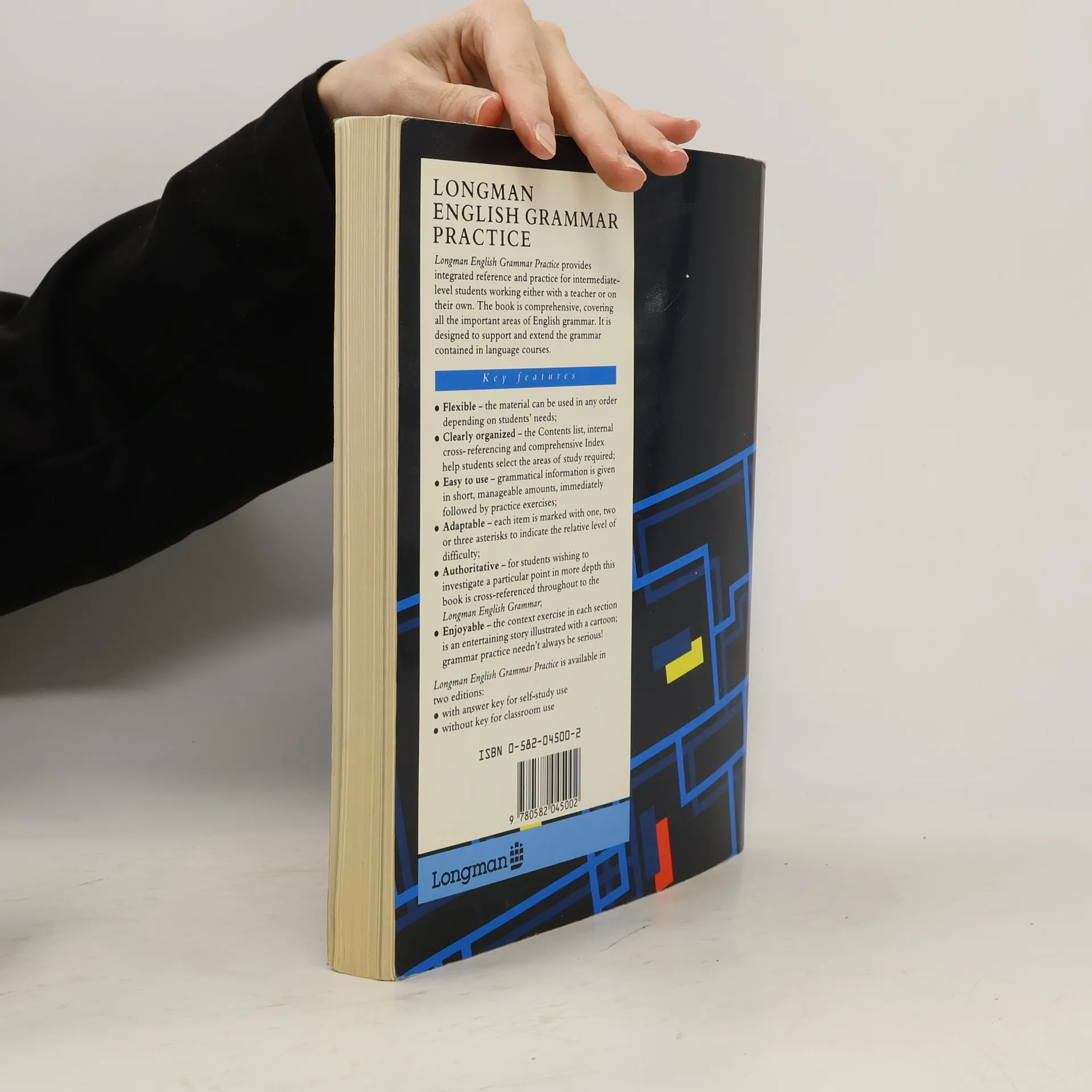 * Flexible -- the material can be used in any order, depending on students' needs. * Clearly organised -- the Contents list, internal cross-referencing and comprehensive Index helps students select the areas of study required. * Easy to use -- grammatical information is given in short, manageable amounts, immediately followed by practice exercises. * Adaptable -- each item is marked with one, two or three asterisks to indicate the relative level of difficulty. * Authoritative -- for students wishing to investigate as particular point in more depth this book is cross-referenced throughout to the Longman English Grammar. * Enjoyable -- the context exercise in each section is an entertaining story illustrated with a cartoon; grammar practice needn't always be serious!