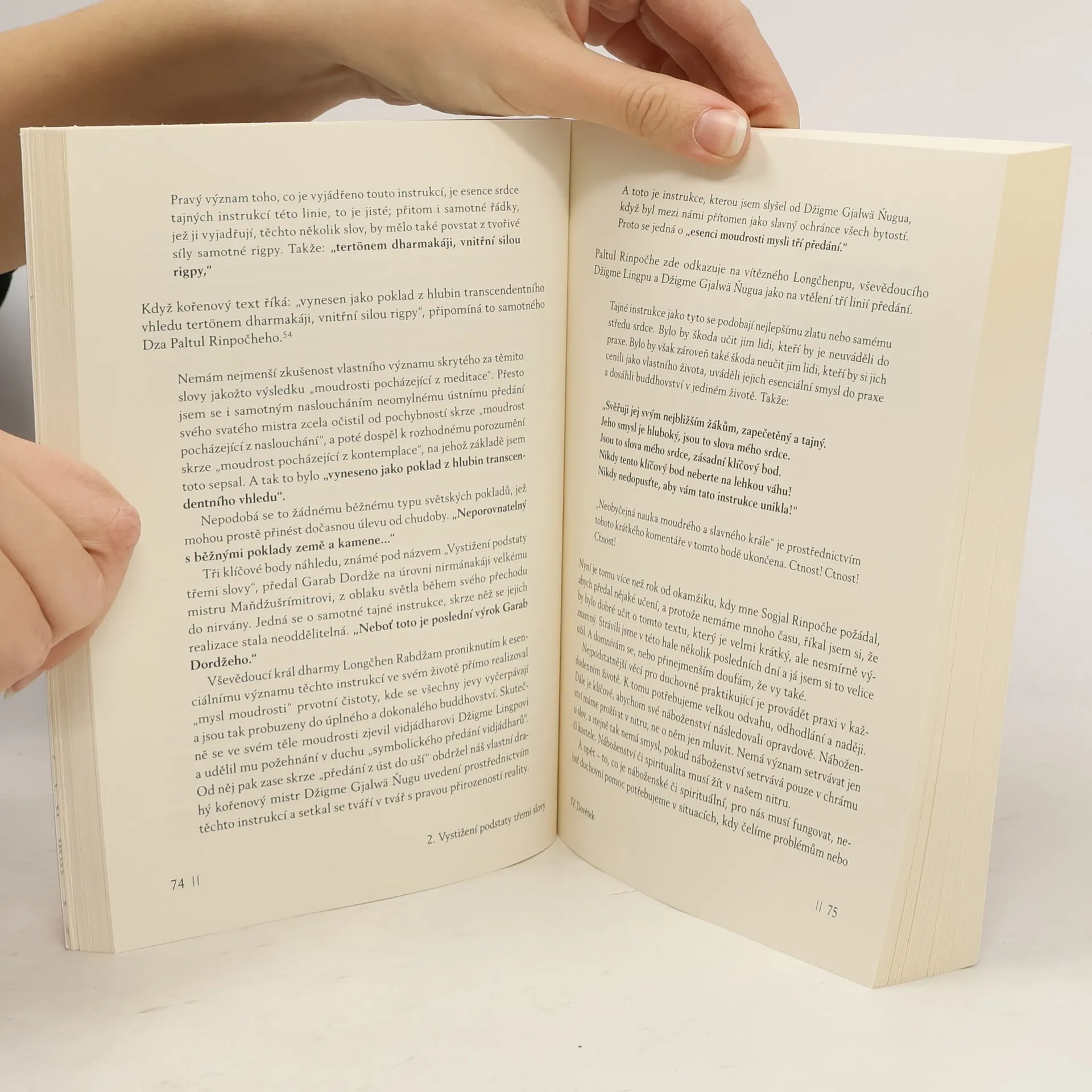 Čtyři přednášky o dzogčhenu (velké dokonalosti), esenci nauk tibetské Staré školy (Ňingma), které přednesl J. S. dalajlama v Evropě a USA na základě klasických textů Garab Dordžeho, Paltul Rinpočheho ad. mistrů meditace. Nauky jsou doplněny jeho přednáškou „Úvahy o významu soucítění na konci dvacátého století“ a přednáškou Ňošul Khan Rinpočheho „Dar světu“. Předmluvu napsal Sogjal Rinpočhe.