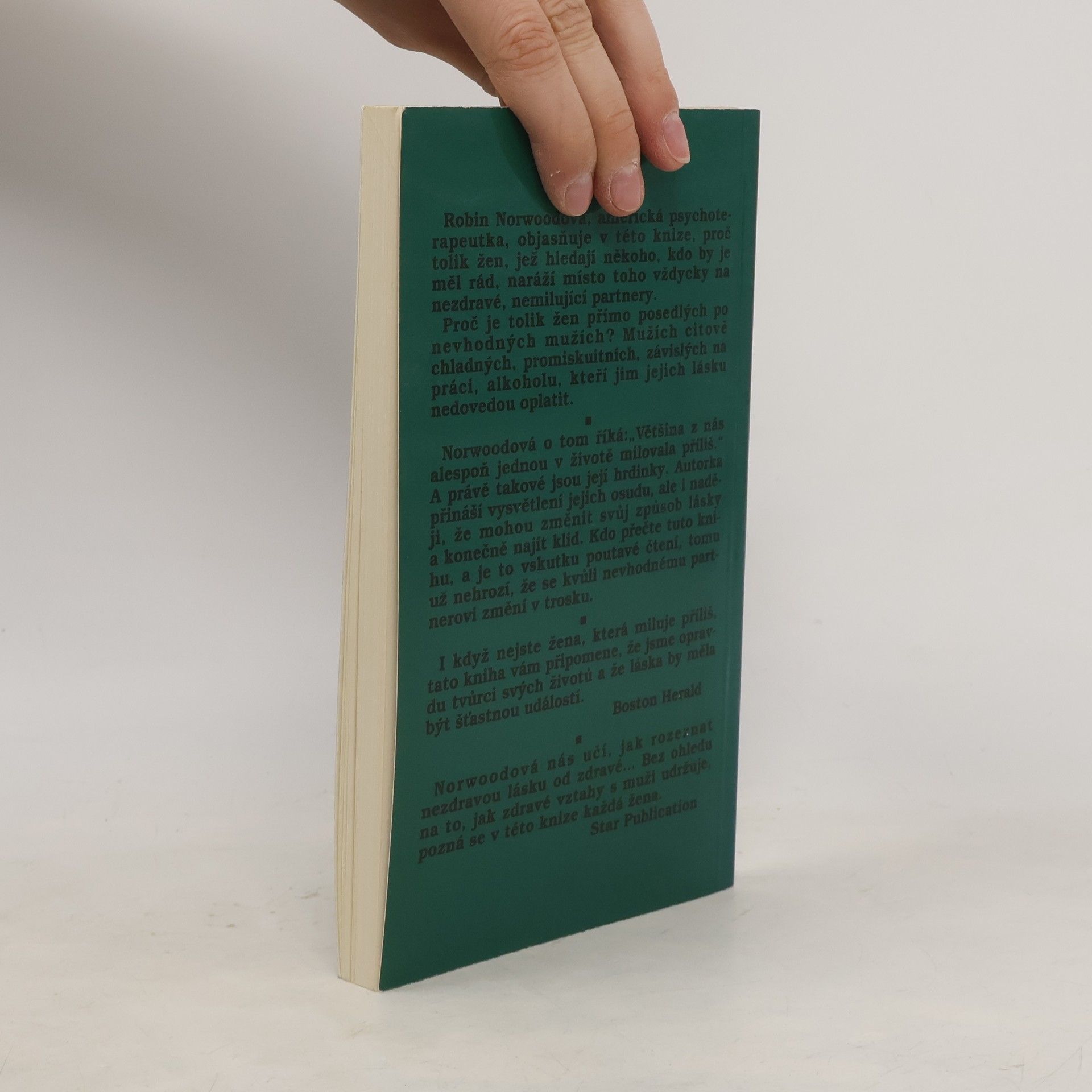 Robin Norwoodová, americká psychoterapeutka, objasňuje v této knize, proč tolik žen, jež hledají někoho, kdo by je měl rád, naráží místo toho vždycky na nezdravé, nemilující partnery. Proč je tolik žen přímo posedlých po nevhodných mužích? Mužích citově chladných, promiskuitních, závislých na práci, alkoholu, kteří jim jejich lásku nedovedou oplatit. Norwoodová o tom říká: "Většina z nás alespoň jednou v životě milovala příliš." A právě takové jsou její hrdinky. Autorka přináší vysvětlení jejich osudu, ale i naději, že mohou změnit svůj způsob lásky a konečně najít klid. Kdo přečte tuto knihu, a je to vskutku poutavé čtení, tomu už nehrozí, že se kvůli nevhodnému partnerovi změní v trosku.