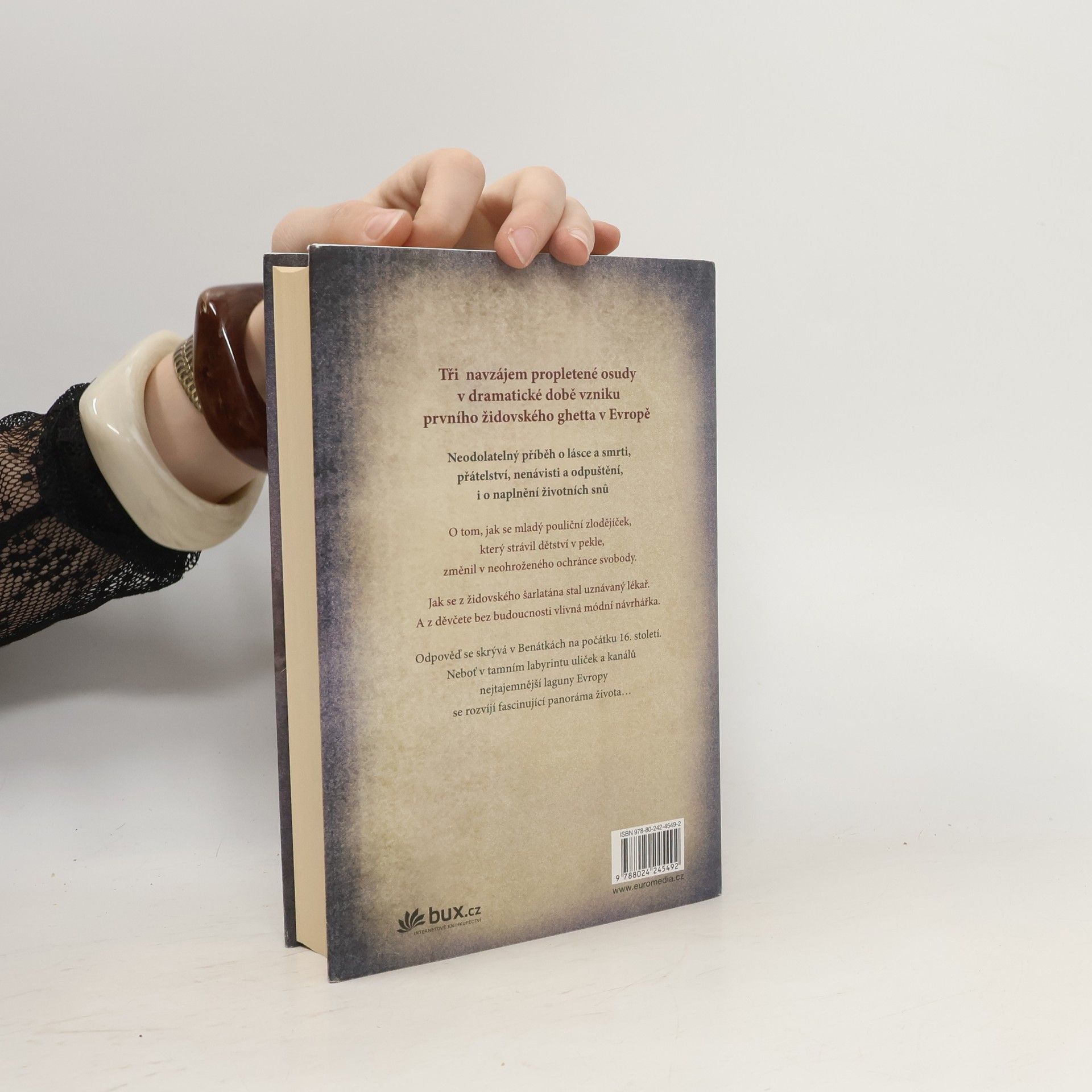 Tři navzájem propletené osudy v dramatické době vzniku prvního židovského ghetta v Evropě Neodolatelný příběh o lásce a smrti, přátelství, nenávisti a odpuštění, i o naplnění životních snů. O tom, jak se mladý pouliční zlodějíček, který strávil dětství v pekle, změnil v neohroženého ochránce svobody. Jak se z židovského šarlatána stal uznávaný lékař. A z děvčete bez budoucnosti vlivná módní návrhářka. Odpověď se skrývá v Benátkách na počátku 16. století. Neboť v tamním labyrintu uliček a kanálů nejtajemnější laguny Evropy, se rozvíjí fascinující panorama života…