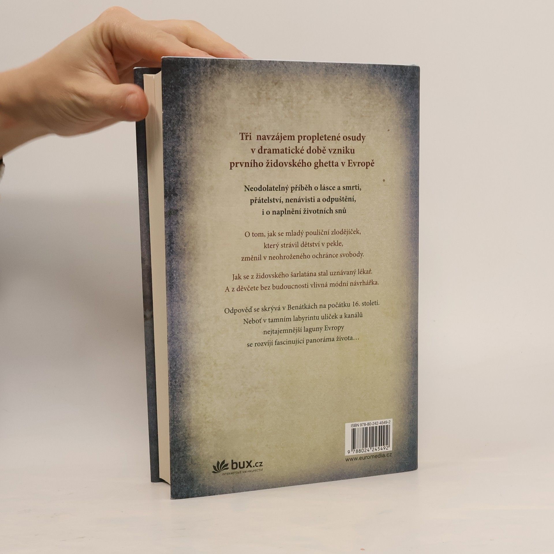 Tři navzájem propletené osudy v dramatické době vzniku prvního židovského ghetta v Evropě Neodolatelný příběh o lásce a smrti, přátelství, nenávisti a odpuštění, i o naplnění životních snů. O tom, jak se mladý pouliční zlodějíček, který strávil dětství v pekle, změnil v neohroženého ochránce svobody. Jak se z židovského šarlatána stal uznávaný lékař. A z děvčete bez budoucnosti vlivná módní návrhářka. Odpověď se skrývá v Benátkách na počátku 16. století. Neboť v tamním labyrintu uliček a kanálů nejtajemnější laguny Evropy, se rozvíjí fascinující panorama života…
