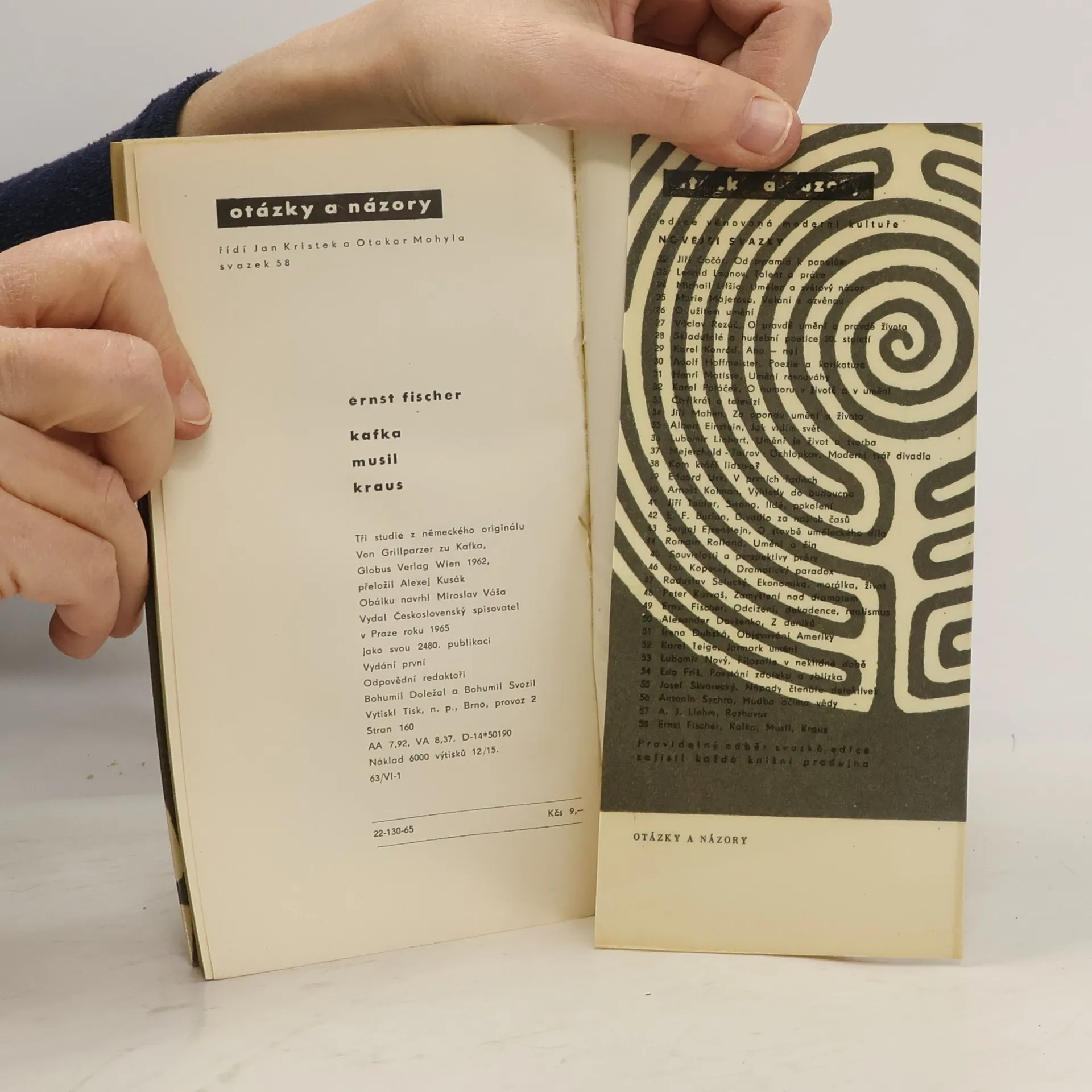 Tři eseje, v nichž se marxistický teoretik zamýšlí nad osobností a dílem F. Kafky, rakouského romanopisce R. Musila a rakouského spisovatele a publicisty K. Krause. Soustřeďuje se především na postižení celkového ideového smyslu díla, které vidí v širších souvislostech kulturních, literárních i společenských, všímá si však i jeho umělecké stránky i jeho vztahu k současnosti.