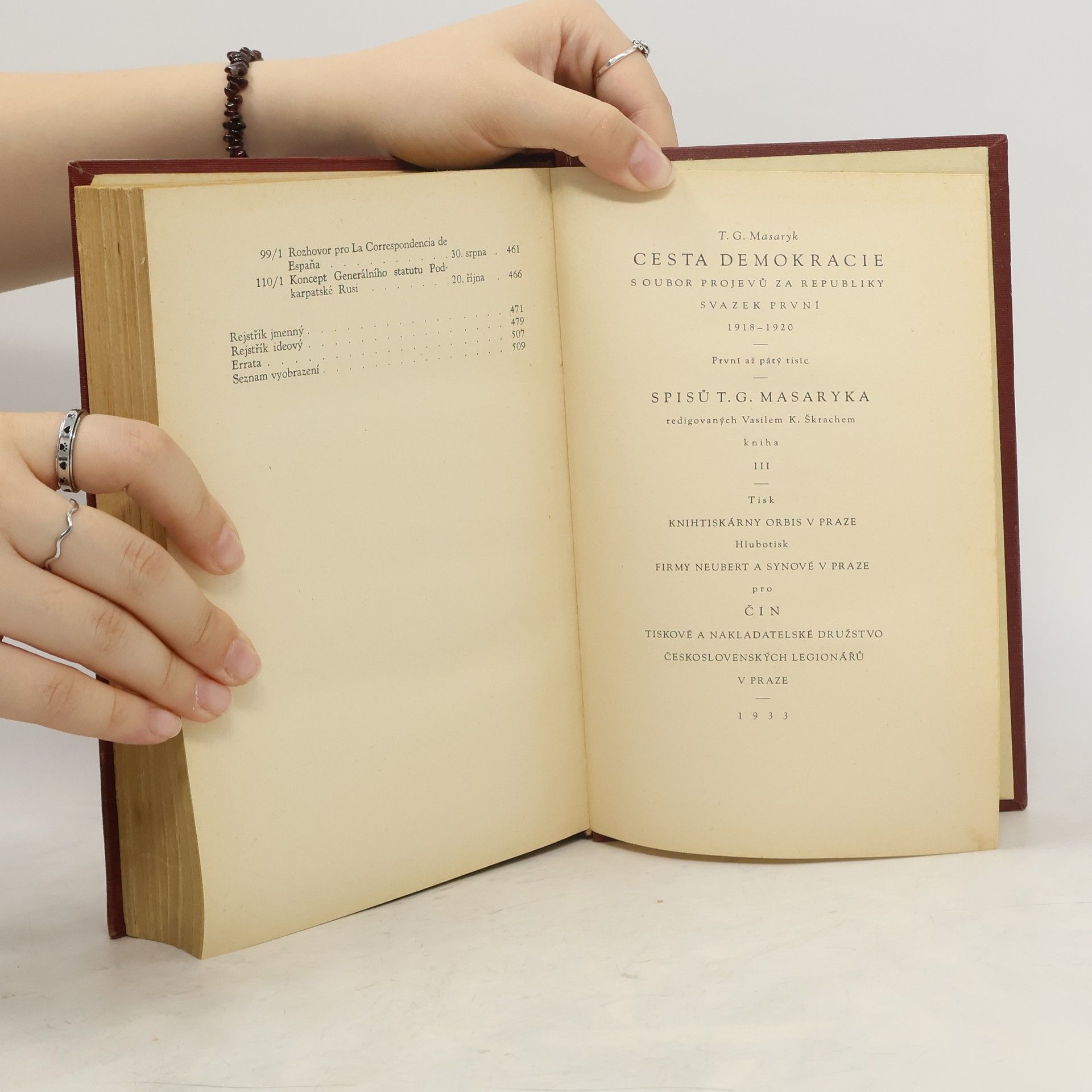 Cesta demokracie: 1918-1920. Svazek první, Tomáš Garrigue Masaryk