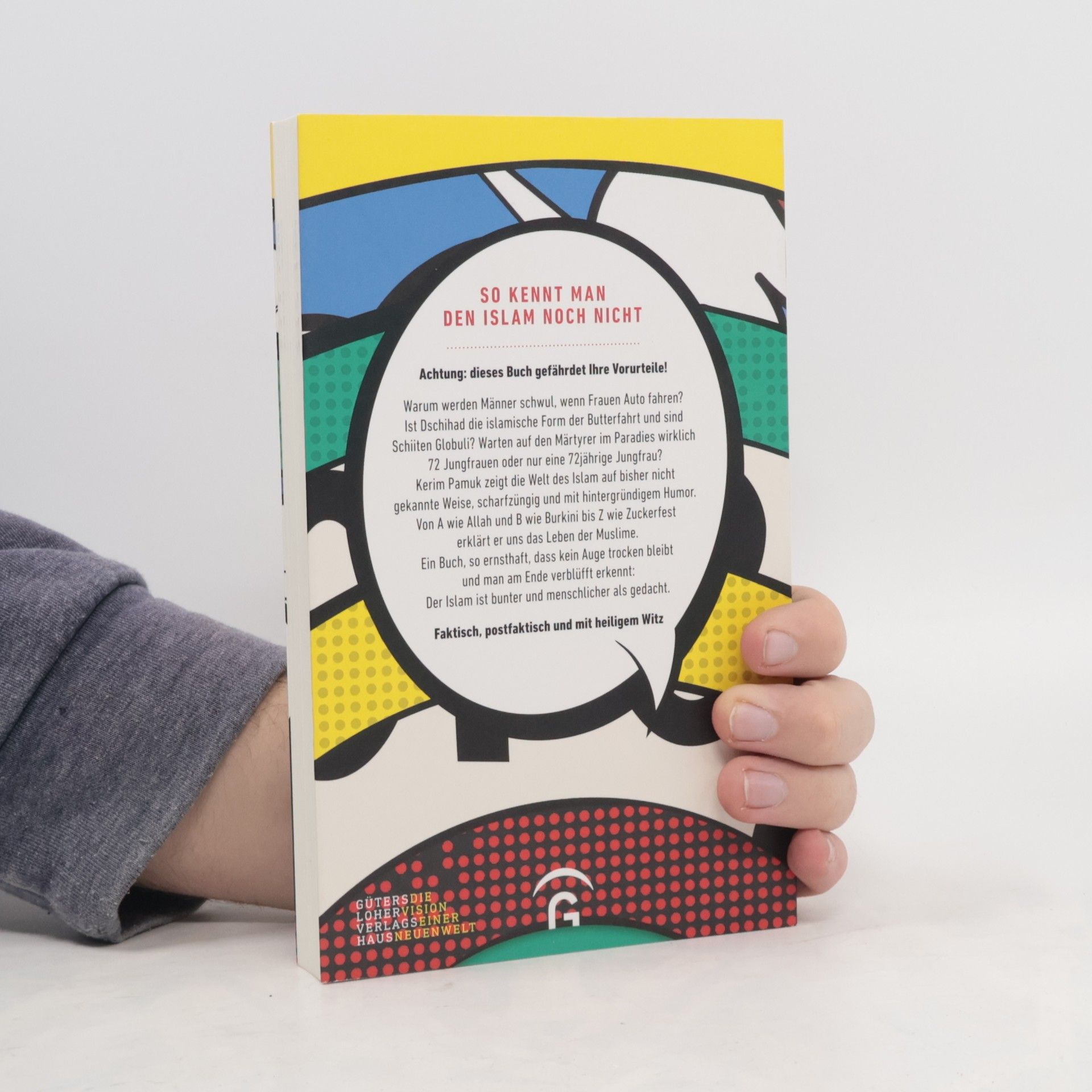 »Man darf die Religion nicht den Religiösen überlassen.«(Kerim Pamuk) Warum werden Männer schwul, wenn Frauen Auto fahren? Ist Dschihad die islamische Form der Butterfahrt und sind Schiiten Globuli? Kerim Pamuk führt auf bisher nicht gekannte Weise ein in die Welt des Islam: mit scharfem Witz und hintergründigem Humor. Von A wie Allah bis Z wie Zahnschmerz erklärt er uns das Leben und Denken der Muslime. Ein Buch, so ernsthaft, dass kein Auge trocken bleibt, und man am Ende verblüfft erkennt: Der Islam ist viel bunter und witziger als gedacht.