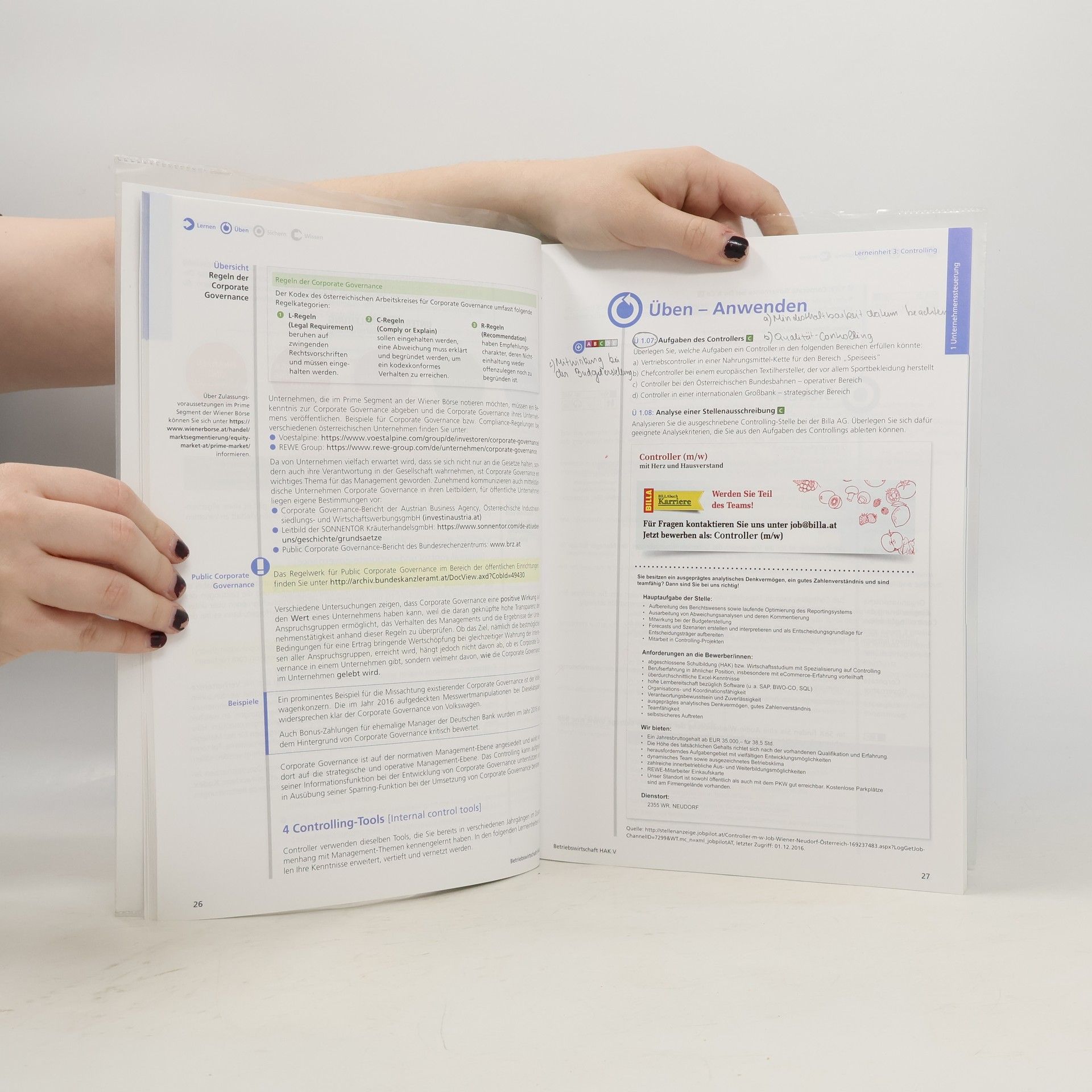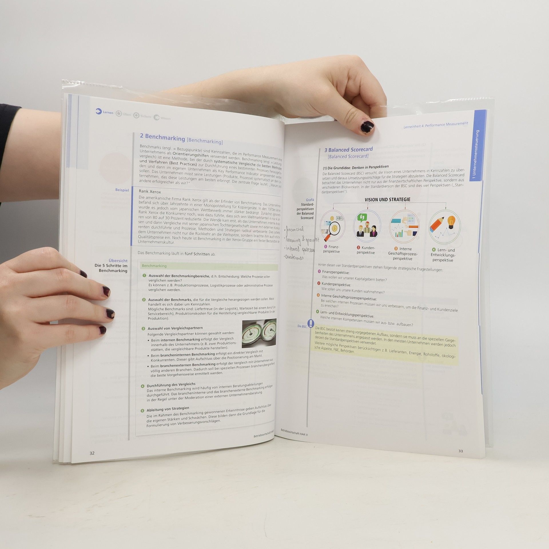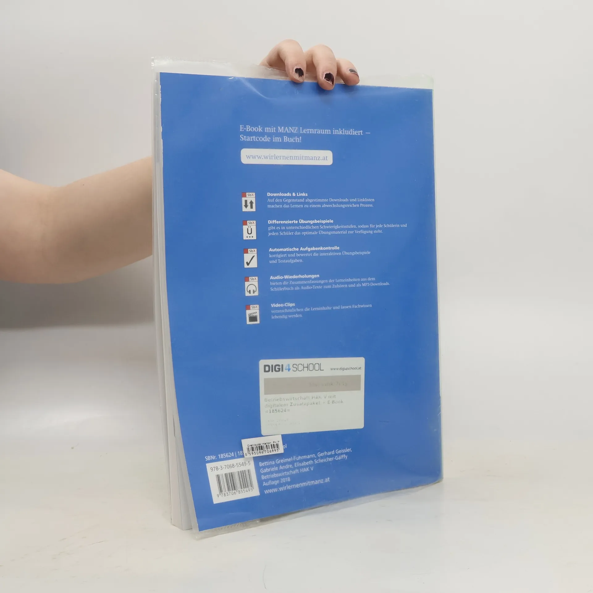 Schülerbuch: Themenübergreifende Stoffwiederholung und Fallstudien in jedem Kapitel, zentrale betriebswirtschaftliche Begriffe mit Erklärung in Deutsch und Englisch, umfangreiches zweisprachiges Stichwortverzeichnis, englische Aufgaben und kleine Fallbeispiele sowie englische Audio-Wiederholungen zum Üben der richtigen Aussprache 9. Semester: Unternehmenssteuerung – St. Galler Management-Modell, Stakeholder-Management, Corporate Governance, Controlling, Performance Measurement, Reporting, Krisenmanagement, Unternehmensauflösung; Unternehmenszusammenschlüsse, Unternehmensbewertung; Unternehmensgründung – Neugründung, Franchising, Unternehmensübernahme, Businessplan, komplexe Fallstudien 10. Semester: wiederholende Aufgabenstellungen, komplexe Fallstudien Schüler-SbX: Interaktive Übungen mit automatischer Aufgabenkontrolle, Bildschirmpräsentationen, Arbeitsblätter mit zusätzlichen Übungen, Audio-Wiederholungen auf Englisch, PDF-Downloads mit Zusatzinformationen, MANZ Lernraum online