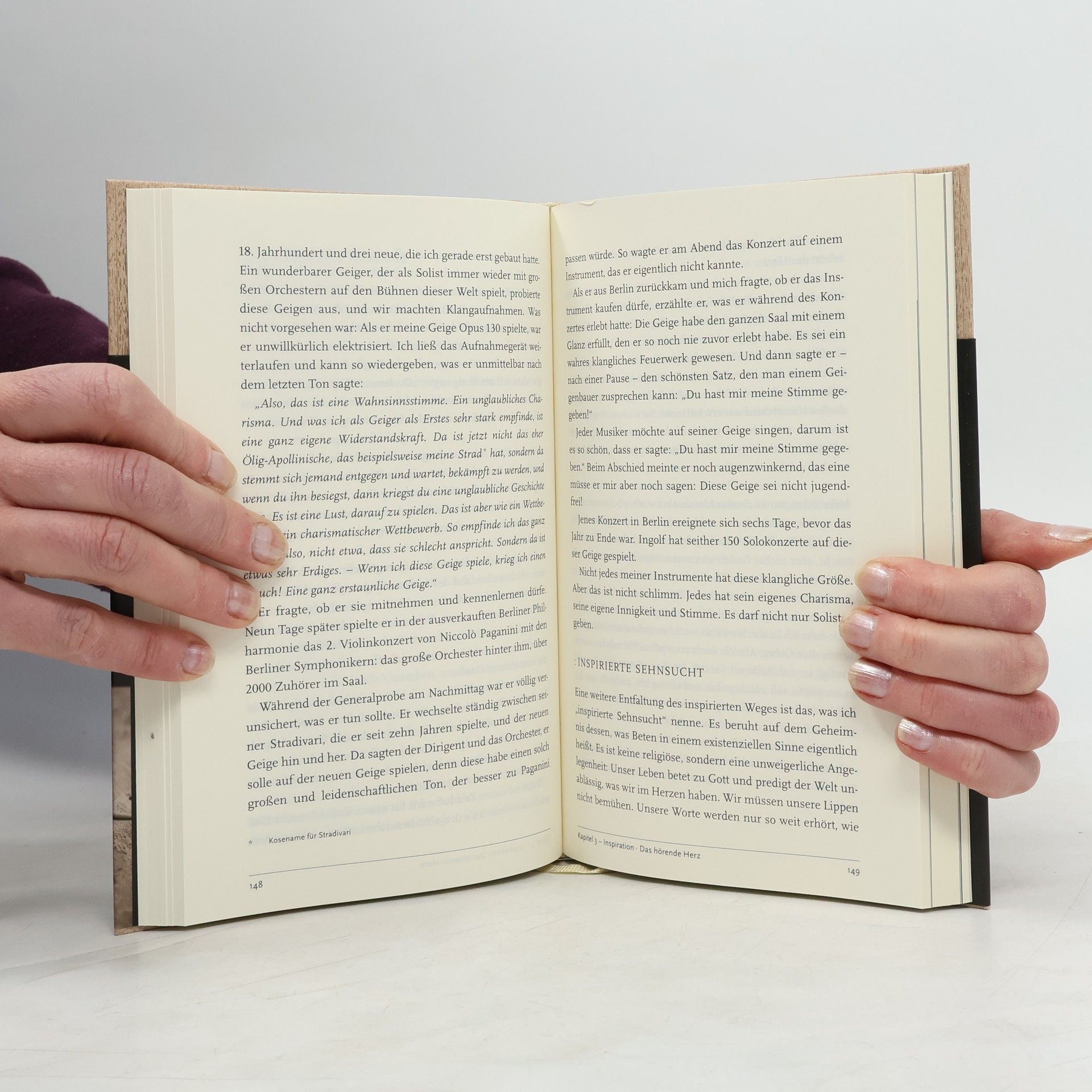 Martin Schleske weiß als Geigenbauer, wie bedeutsam es ist, das richtige Holz auszuwählen. Welche Struktur und Härte es haben muss, damit die Geige, die er einmal damit bauen wird, am Ende klingt. Es braucht Erfahrung, viel Gefühl, eine ruhige Hand und auch die richtigen Werkzeuge. Weltbekannte Geiger spielen seine Instrumente. In Fachkreisen wird Martin Schleske als „Stradivari des 21. Jahrhunderts“ bezeichnet. Nur 12 bis 15 Instrumente verlassen jährlich sein Atelier. Sein ganzes Leben ist eine große Suche – nach dem perfekten Klang und dem Geheimnis Gottes. Immer wieder werden ihm beim Arbeiten in seiner Werkstatt die Zusammenhänge zwischen Leben und Glauben neu bewusst. Die Geschichten, die Martin Schleske erzählt, sind faszinierende Gleichnisse zu den Themen Inspiration, Weisheit, Gebet, Schönheit, Liebe, Mystik und Seele. Mit Holzschnitten des Autors und Fotos von Donata Wenders.