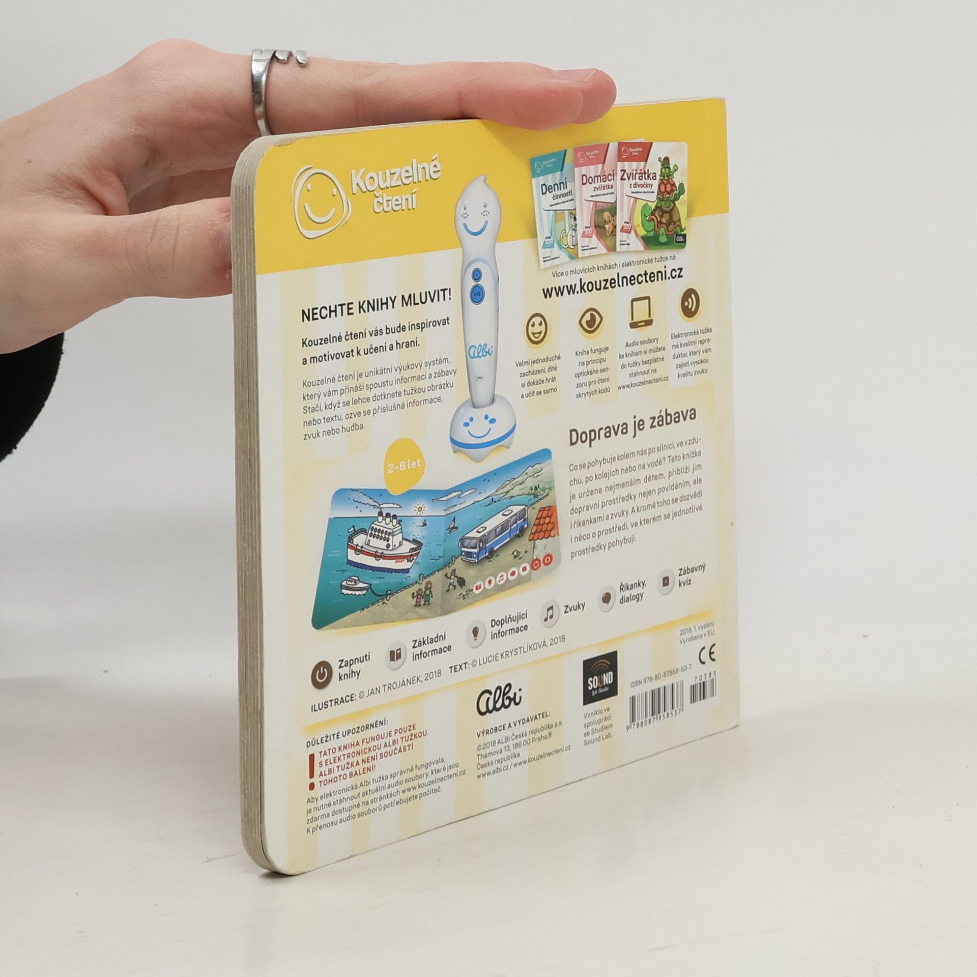 Doprava je zábava. Co se pohybuje kolem nás po silnici, ve vzduchu, po kolejích nebo na voďe? Tato knížka je určena nejmenším dětem, přiblíží jim dopravní prostředky nejen povídáním, ale i říkankami a zvuky. A kromě toho se dozvědí i něco o prostředí, ve kterém se jednotlivé prostředky pohybují.