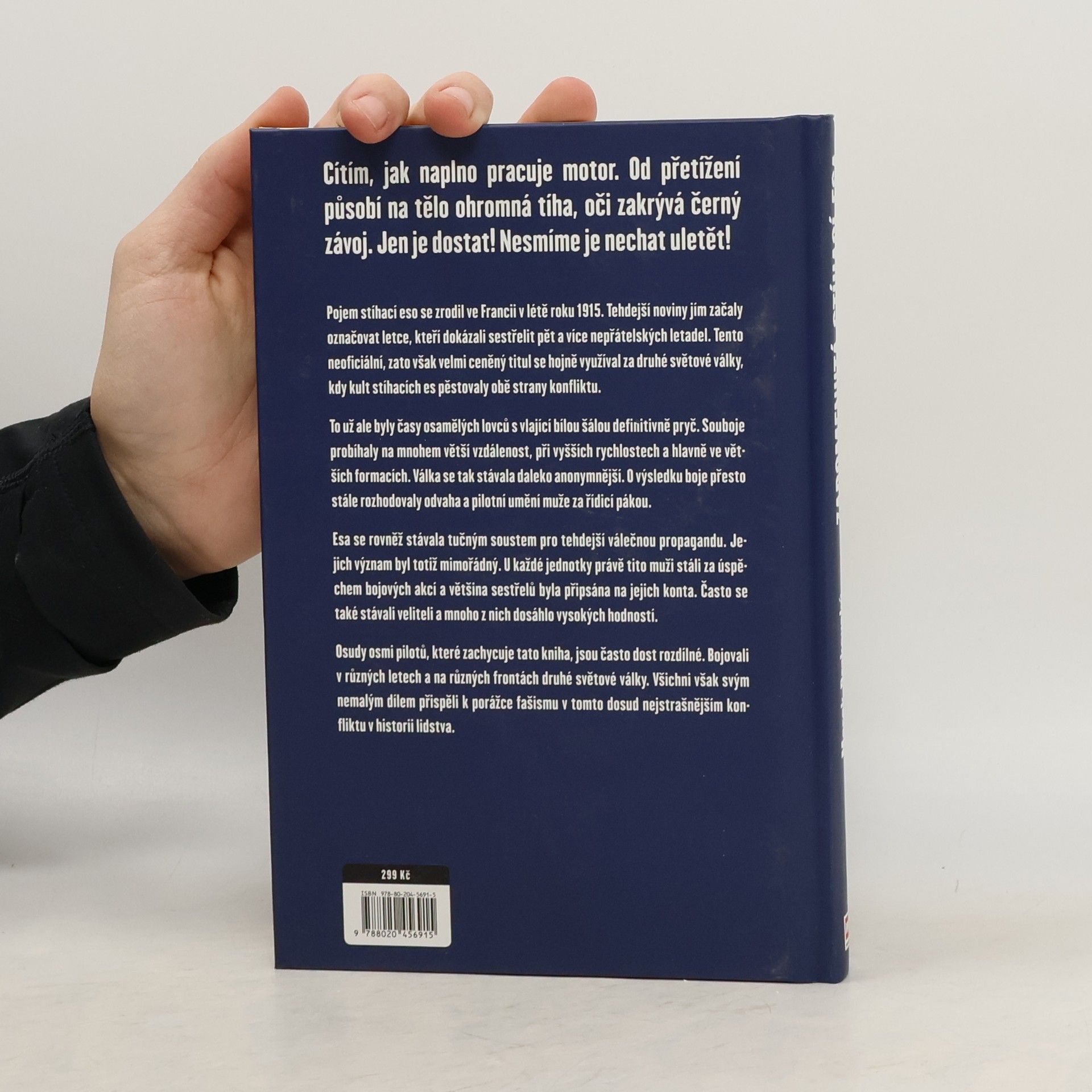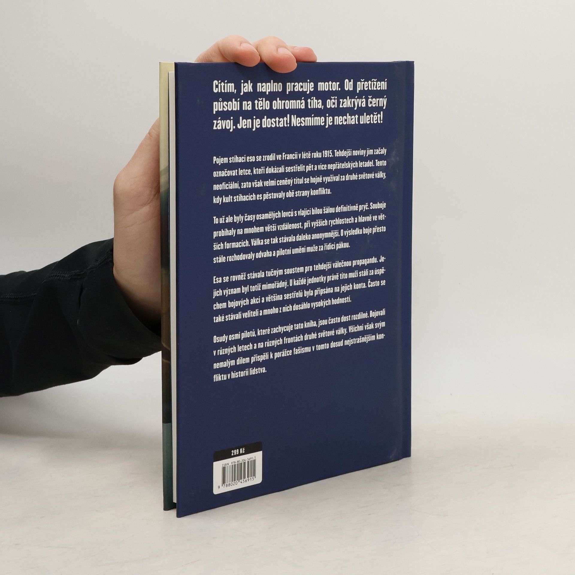 Osudy osmi spojených stíhačů 2. světové války. Pojem stíhací eso se zrodil ve Francii v létě roku 1915. Tehdejší noviny jím začaly označovat letce, kteří dokázali sestřelit pět a více nepřátelských letadel. Tento neoficiální, zato však velmi ceněný titul se hojně využíval za druhé světové války, kdy kult stíhacích es pěstovaly obě strany konfliktu. To už ale byly časy osamělých lovců s vlající bílou šálou definitivně pryč. Souboje probíhaly na mnohem větší vzdálenost, při vyšších rychlostech a hlavně ve větších formacích. Válka se tak stávala daleko anonymnější. O výsledku boje přesto stále rozhodovala odvaha a pilotní umění muže za řídicí pákou. Esa se rovněž stávala tučným soustem pro tehdejší válečnou propagandu. Jejich význam byl totiž mimořádný. U každé jednotky právě tito muži rozhodovali o úspěchu či neúspěchu bojových akcí a většina sestřelů byla připsána na jejich konta. Často se také stávali veliteli a mnoho z nich dosáhlo vysokých hodností. Osudy osmi pilotů, které zachycuje tato kniha, jsou často dost rozdílné. Bojovali v různých letech a na různých frontách druhé světové války. Všichni však svým nemalým dílem přispěli k porážce fašismu v tomto dosud nejstrašnějším konfliktu v historii lidstva.