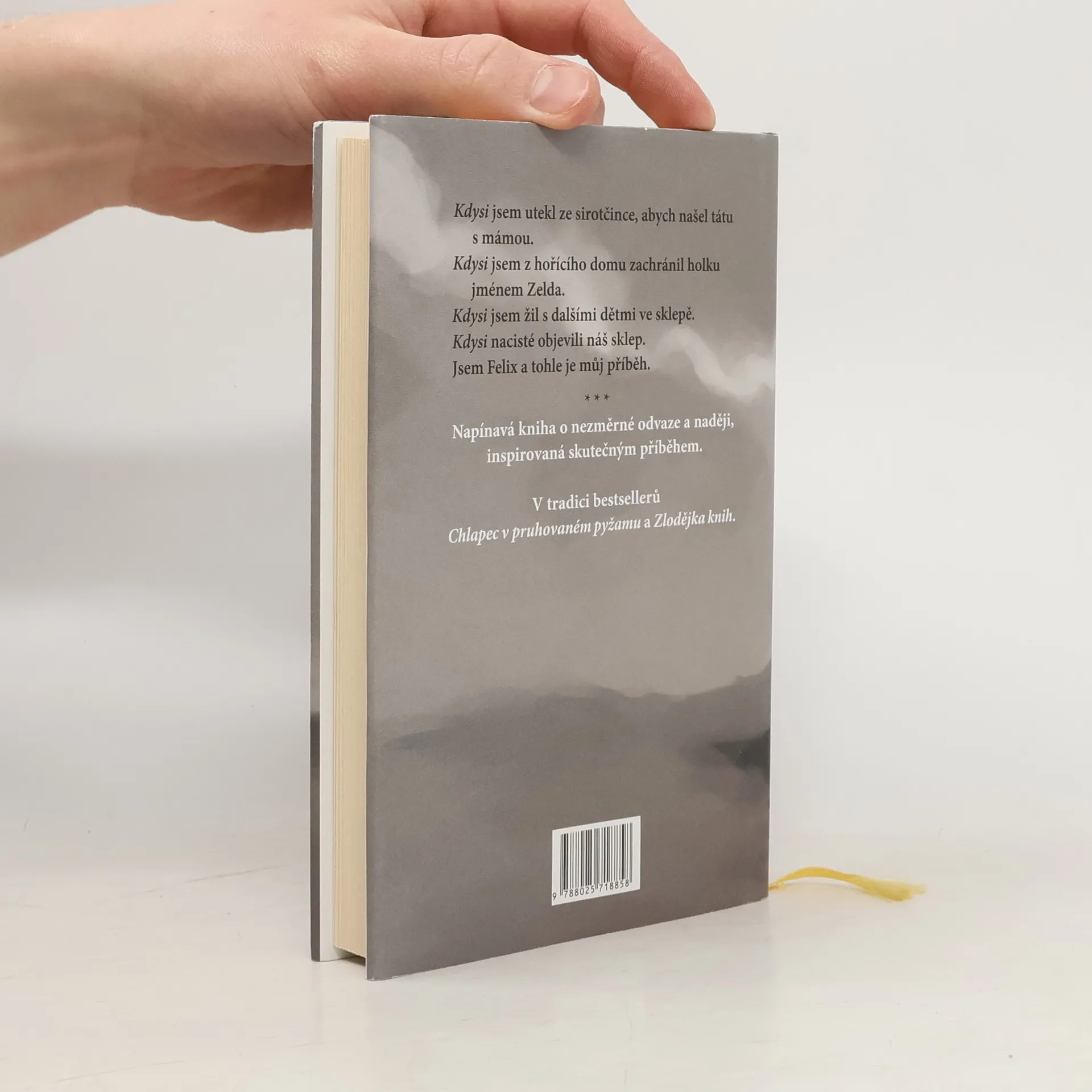 Každý si zaslouží zažít něco dobrého. Alespoň jednou v životě. Tři roky a osm měsíců žije devítiletý Felix v odlehlém katolickém sirotčinci v horách, ačkoli není katolického vyznání. Jeho rodiče nejsou mrtví. Přivedli ho k matce Mince, představené jeptišek, aby se měl dobře. A určitě si pro něj brzy přijdou, jak Felix věří, jen co vyřeší potíže, které mají se svým knihkupectvím. Protože židovští knihkupci to mají v Polsku roku 1942 těžké. Jak moc, to Felix pochopí, až když se v sirotčinci objeví muži s podivnými páskami na rukávech a začnou vyhazovat a pálit knihy z místní knihovny. Felix uteče, aby našel rodiče a před těmi muži je varoval. Cestou zachrání z hořícího domu malou Zeldu, jejíž rodina byla zavražděna, a pomalu mu dochází, co mají tihle spalovači knih za lubem. A co to znamená pro něj, Zeldu a všechny ostatní Židy. Morris Gleitzman líčí v prvním dílu z čtyřdílné řady život v okupovaném Polsku z dětsky naivní perspektivy malého hrdiny, jeho výpověď je však o to silnější.