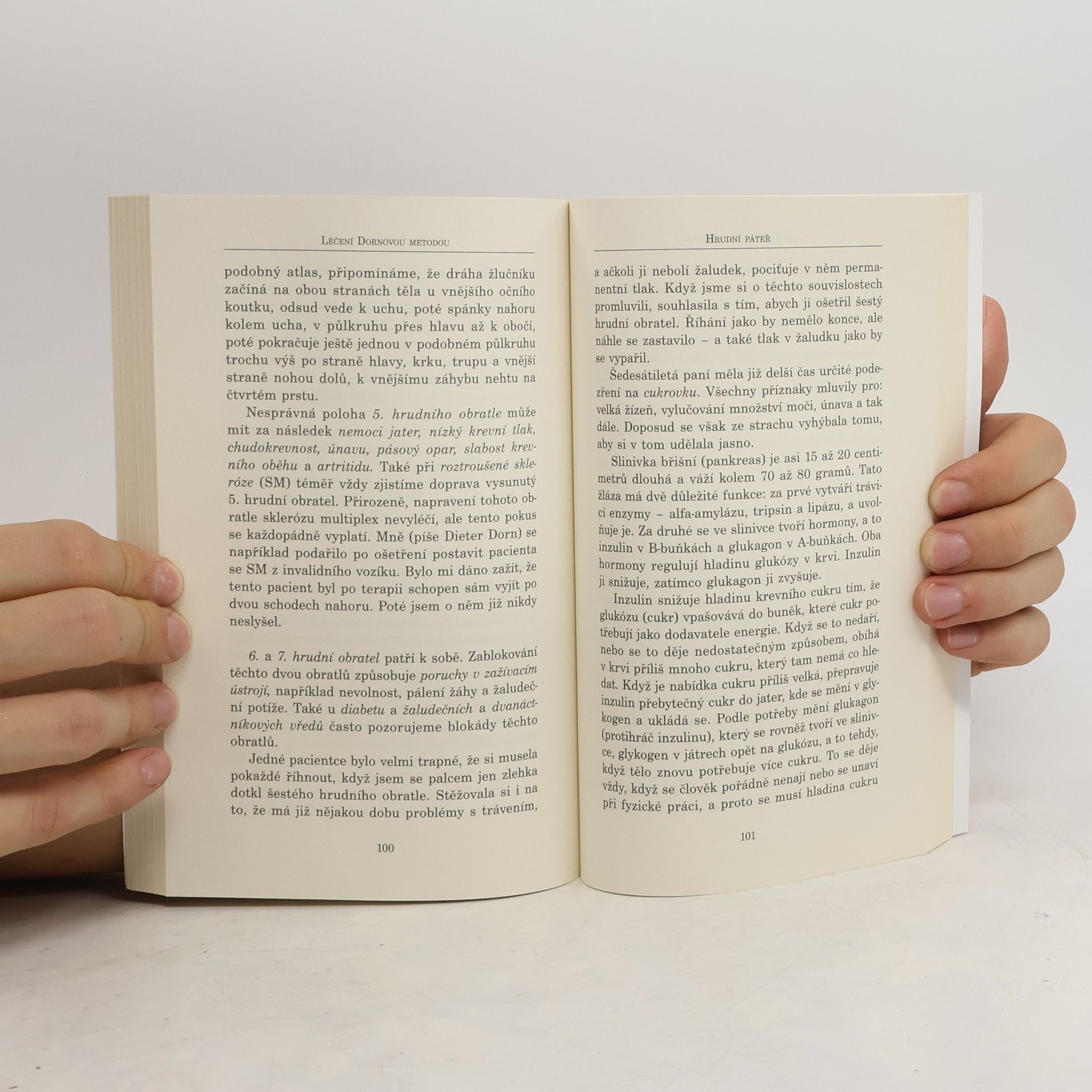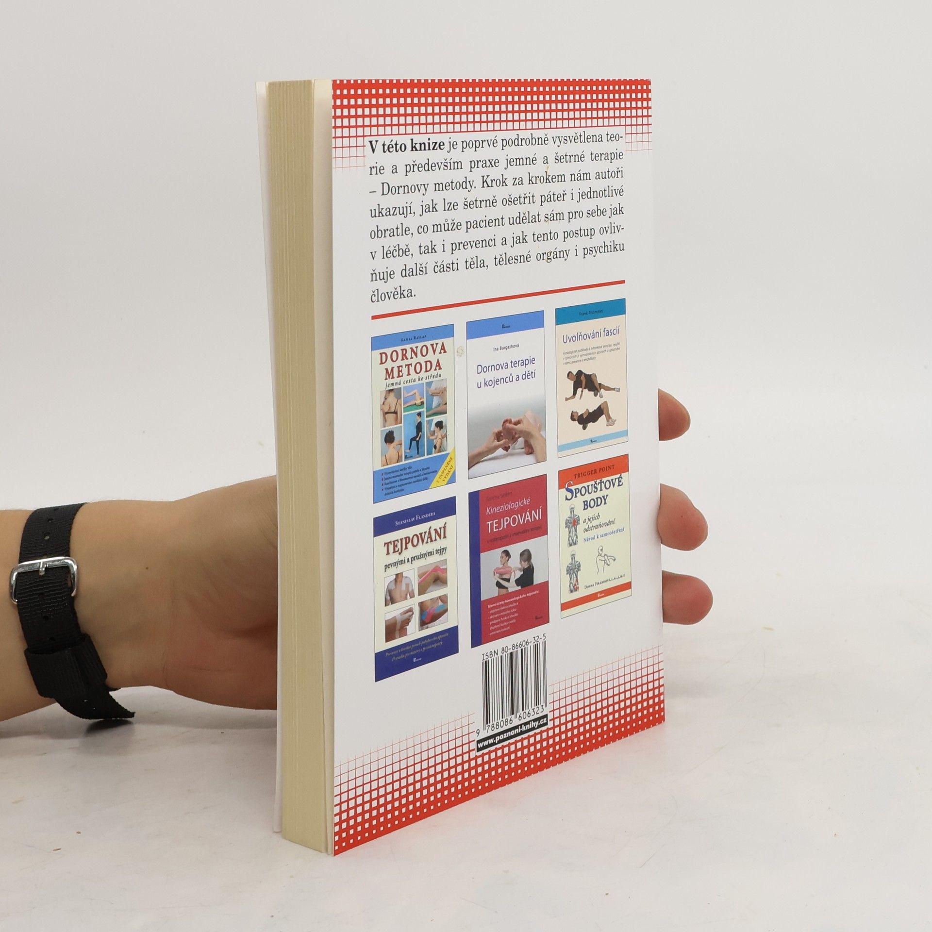 V této knize je podrobně vysvětlena teorie a především praxe jemné a šetrné terapie - Dornovy metody. Krok za krokem nám autoři ukazují, jak lze šetrně ošetřit páteř i jednotlivé obratle, co může pacient udělat sám pro sebe jak v léčbě, tak i v prevenci a jak tento postup ovlivňuje další části těla, tělesné orgány i psychiku člověka.