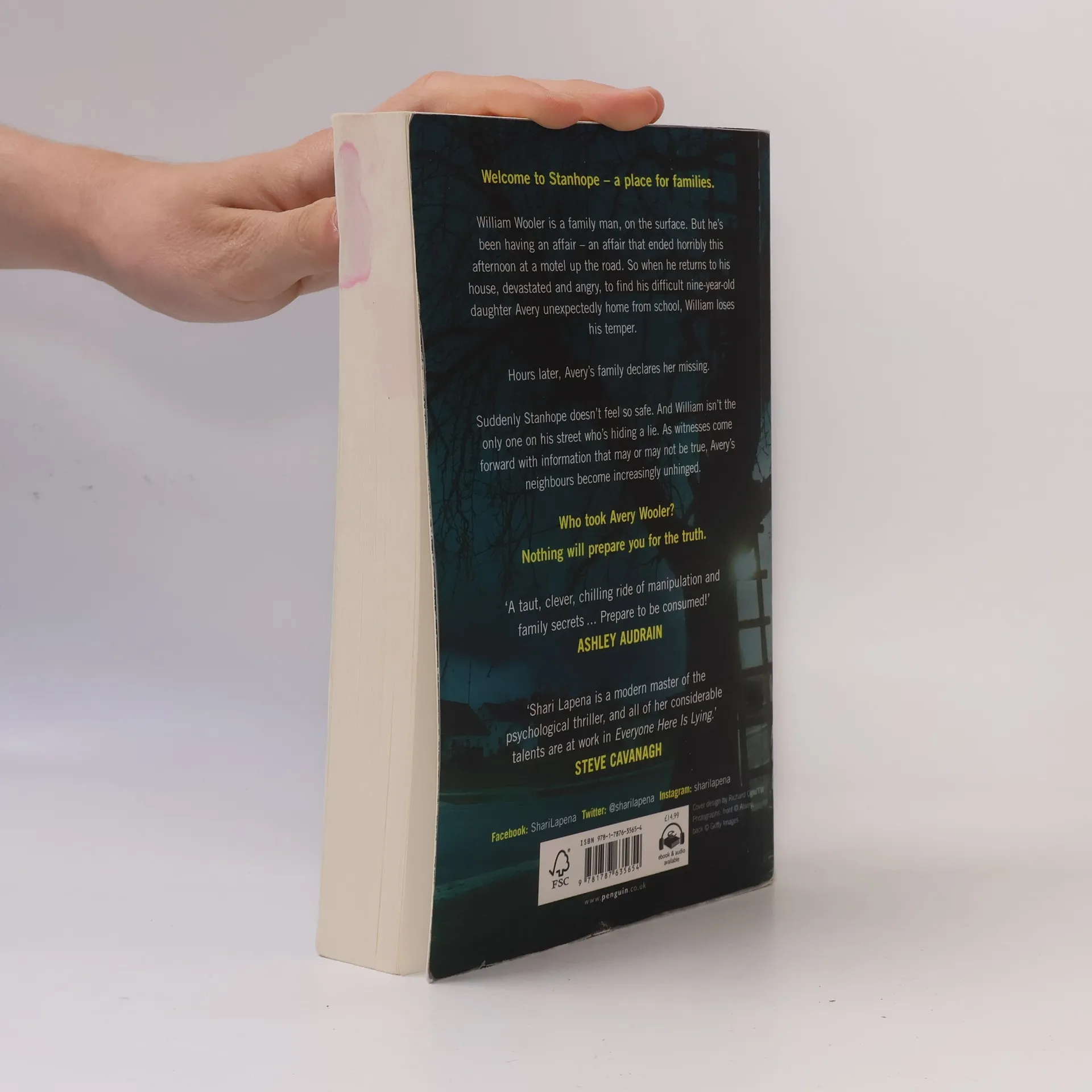 'The most addictive book I've read in ages - so slick and disquieting and clever. Just brilliant.' LISA JEWELL 'I was obsessed with Everyone Here is Lying . . . Fast paced, tightly-plotted and with twists so well executed they floored me. Loved every word!' CLAIRE DOUGLAS 'A smart, unguessable mystery set among a cast of satisfyingly flawed characters. Shari Lapena is an auto-buy for me - I always know I'll be in for a treat!' LOUISE CANDLISH Welcome to Stanhope - a safe neighbourhood. A place for families. William Wooler is a family man, on the surface. But he's been having an affair, an affair that ended horribly this afternoon at a motel up the road. So when he returns to his house, devastated and angry, to find his difficult nine-year-old daughter Avery unexpectedly home from school, William loses his temper. Hours later, Avery's family declares her missing. Suddenly Stanhope doesn't feel so safe. And William isn't the only one on his street who's hiding a lie. As witnesses come forward with information that may or may not be true, Avery's neighbours become increasingly unhinged. Who took Avery Wooler? Nothing will prepare you for the truth.