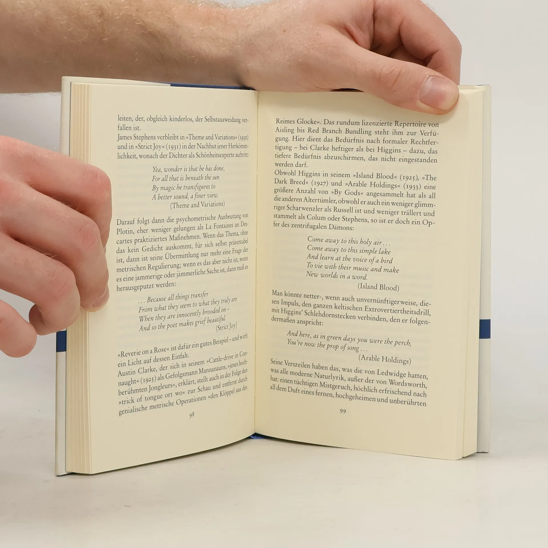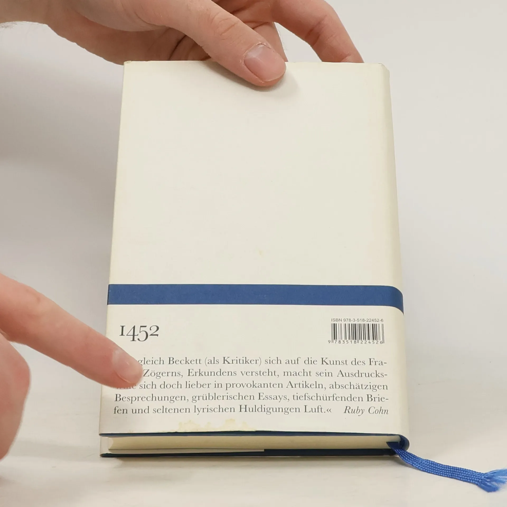 Es handelt sich um eine von Samuel Beckett autorisierte Sammlung kleiner Schriften zur Ästhetik, die 1983 veröffentlicht wurde, sechs Jahre vor seinem Tod. Sie gliedert sich in drei Abschnitte: Ästhetik, Literaturkritik und Kunstkritik. Ruby Cohn hebt in ihrer Einleitung hervor, dass die kritischen Texte Becketts oft höher geschätzt werden als der Autor selbst. Die Sammlung birgt eine eigene Ästhetik, wobei Becketts Kritiken sich nicht in ein festes Schema fügen lassen. Sein Ausdruckswille zeigt sich in provokanten Artikeln, abschätzigen Besprechungen, grüblerischen Essays, tiefschürfenden Briefen und seltenen lyrischen Huldigungen. Etwa zwei Drittel der Texte sind bereits auf Deutsch veröffentlicht. Zu den unveröffentlichten Arbeiten gehören unter anderem eine Rezension von Eduard Mörikes Novelle „Mozart auf der Reise nach Prag“ sowie ein Fragment eines von Beckett lange bedachten Dramas über Samuel Johnson aus dem Jahr 1937, das mit einem Dialog beginnt. Diese Sammlung lädt dazu ein, Becketts vielfältige Gedanken und Perspektiven zu genießen.