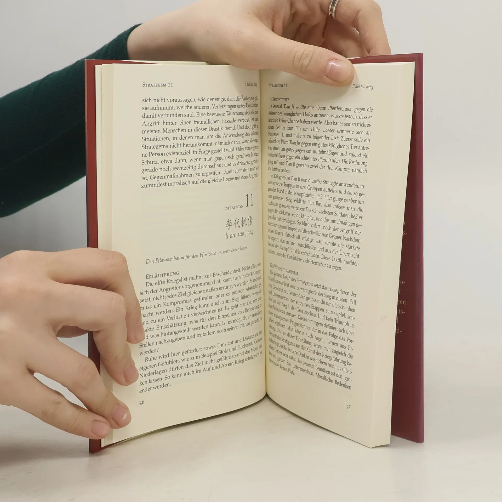 Vor knapp 2500 Jahren entstanden im alten China die so genannten Strategeme: eine Sammlung an Listen, Tücken und Strategien, die die Kunst der Kriegsführung lehrten. Was für den Angriff eines Heeres gilt, hat in vielerlei Hinsicht auch in ganz alltäglichen Situationen Bedeutung. Das Buch zeigt, dass dieses symbolische Taktieren noch heute von ungeheuerer Brisanz ist: ob in der Wirtschaft, im Zusammenleben der Menschen, in der Psychologie, in der Politik, in Gruppen, am Arbeitsplatz und in der Freizeit, bis hinein in die Erziehung. Nach der jeweils ursprünglichen Bedeutung des Strategems folgen eine kurze Erläuterung, der geschichtliche Hintergrund, eine einfache philosophisch-ethische Gegenüberstellung östlichen und westlichen Denkens sowie der praktische Transfer in unser Leben.