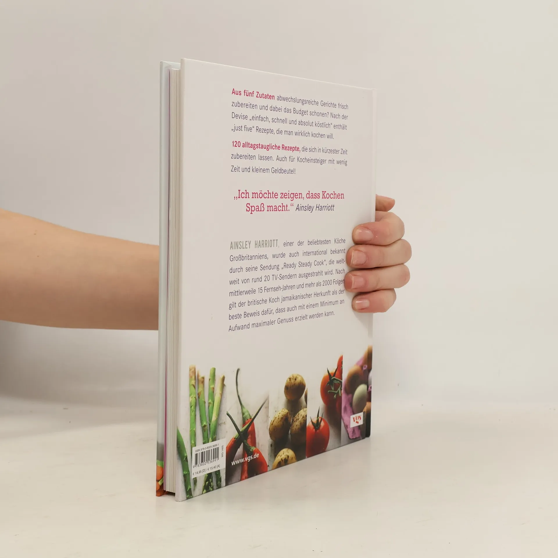 „Kochen ohne Aufwand, kein Stress“– so wie das Motto von Ainsley Harriott sind auch seine Rezeptideen: 120 alltagstaugliche Gerichte, die sich in kürzester Zeit zubereiten lassen; und den Geldbeutel nicht strapazieren. Sein Kochbuch ist ideal für Vielbeschäftigte und Berufstätige, die trotz wenig Zeit gerne selbst kochen und Wert auf frische Zutaten legen. Dass der Koch mit „nur fünf Zutaten“ ein überzeugendes Prinzip für unkomplizierte und preiswerte Gerichte entwickelt hat, hebt das Kochbuch von den vielen „Schnelle Rezepte“-Büchern deutlich ab.
