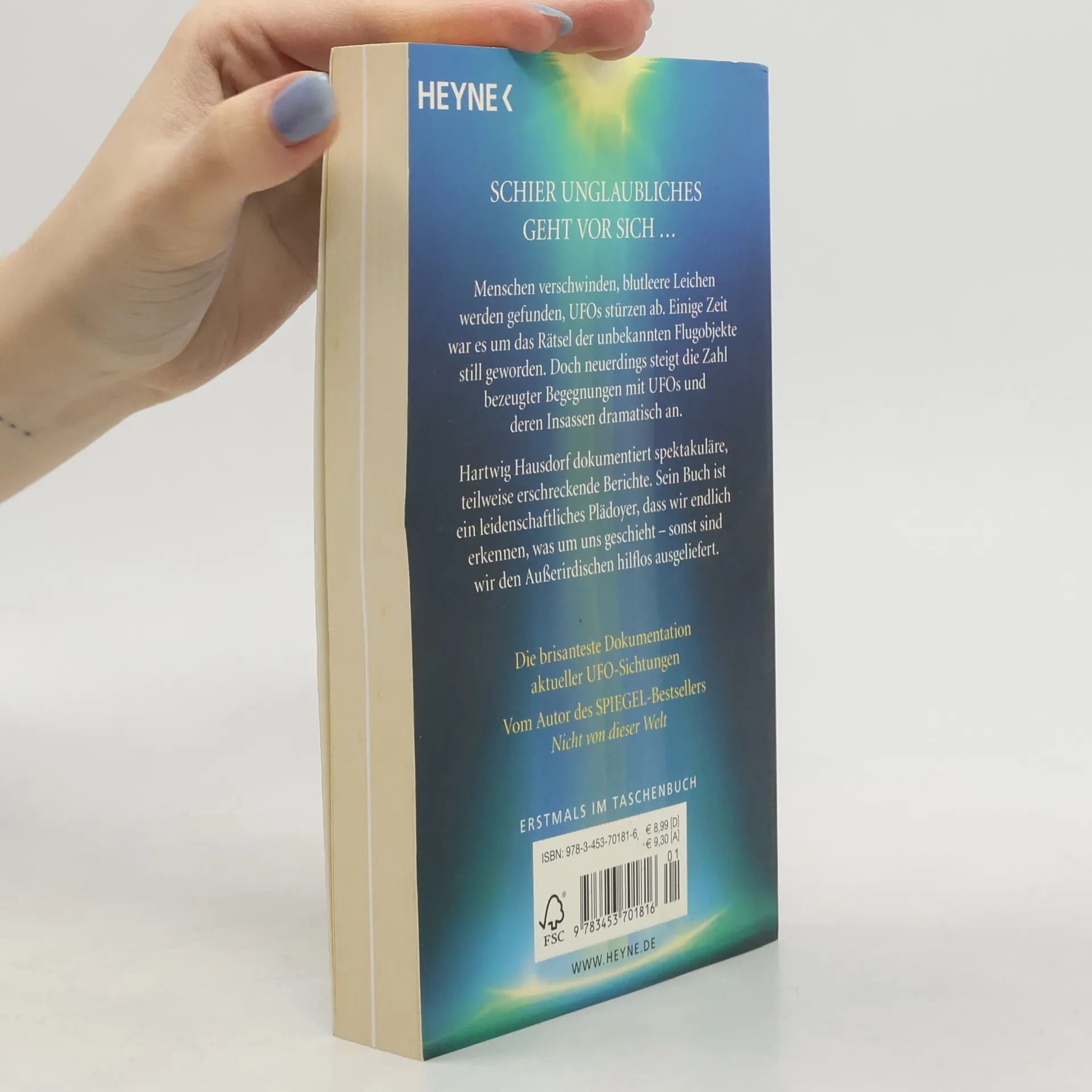 Die brisantesten Fälle aktueller UFO-Sichtungen Menschen verschwinden, blutleere Leichen werden gefunden, UFOs stürzen ab. Einige Zeit war es um das Rätsel der unbekannten Flugobjekte still geworden. Doch neuerdings steigt die Zahl bezeugter Begegnungen mit UFOs und deren Insassen dramatisch an. Hartwig Hausdorf dokumentiert spektakuläre, teilweise erschreckende Berichte. Sein Buch ist ein leidenschaftliches Plädoyer, dass wir endlich erkennen, was um uns geschieht – sonst sind wir den Außerirdischen hilflos ausgeliefert.