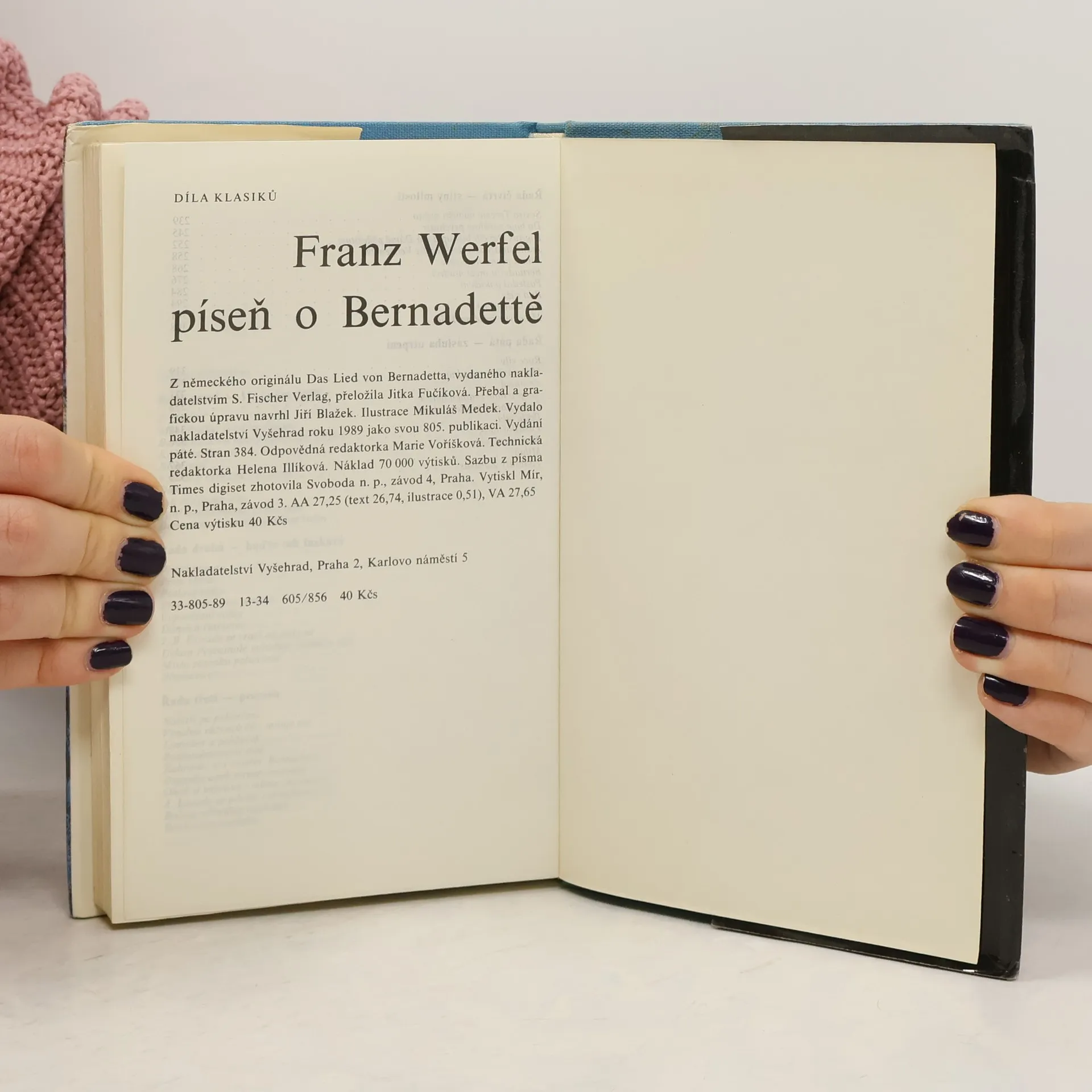 Dokumentární román, vzniklý jako splnění slibu za autorův zdařený útěk před hitlerovským nacismem z okupované Francie, vypráví příběh Bernadetty Soubirousové, chudobného děvčátka, jehož osud souvisí s poutním místem Lurdy v pyrenejském podhůří. 33-805-89