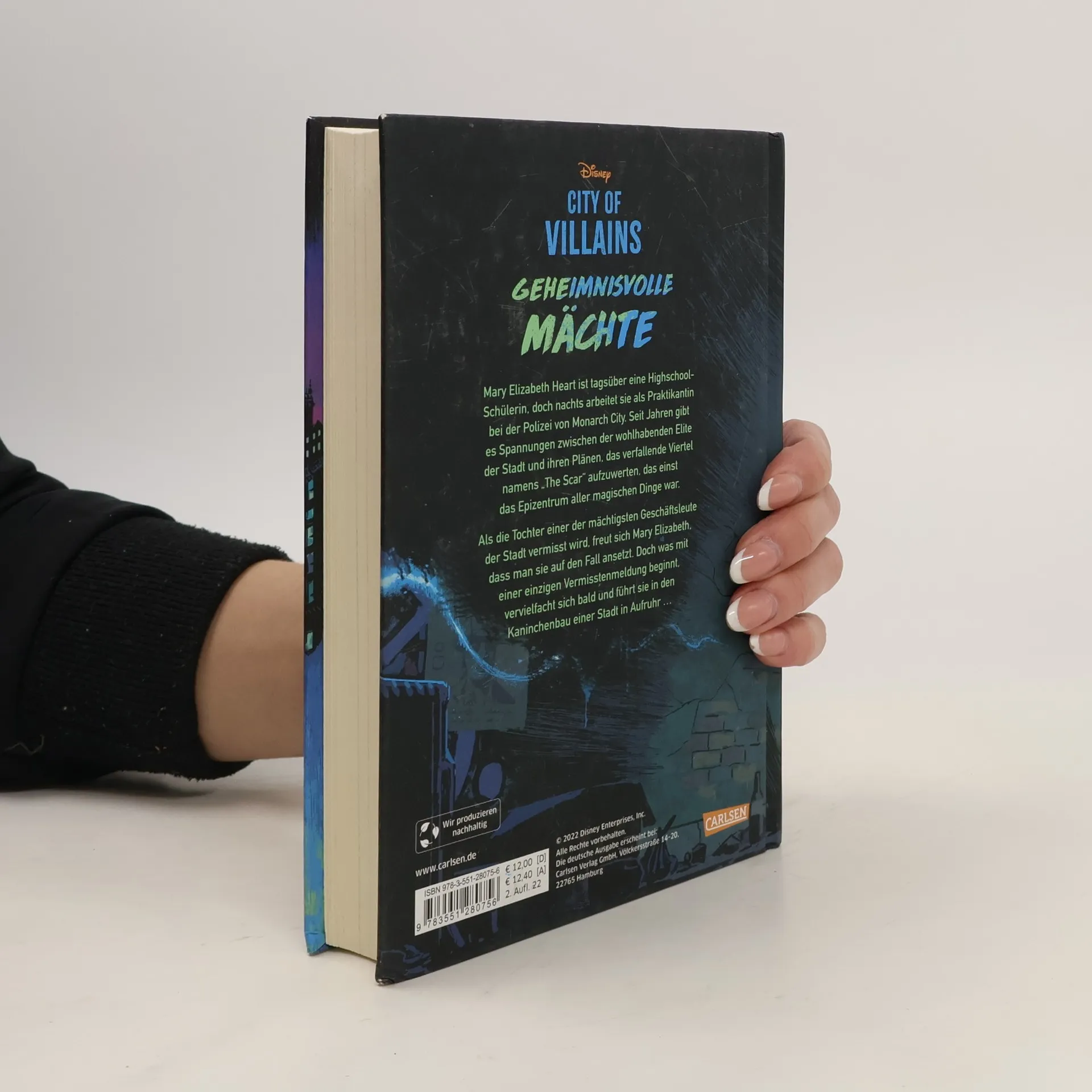 Mary Elizabeth Heart ist tagsüber eine Highschool-Schülerin, doch nachts arbeitet sie als Praktikantin bei der Polizei von Monarch City. Seit Jahren gibt es Spannungen zwischen der wohlhabenden Elite der Stadt und ihren Plänen, das verfallende Viertel namens „The Scar“ zu aufzuwerten, das einst das Epizentrum aller magischen Dinge war. Als die Tochter einer der mächtigsten Geschäftsleute der Stadt vermisst wird, ist Mary Elizabeth begeistert, als sie auf den Fall angesetzt wird. Doch was mit einer einzigen Vermisstenmeldung beginnt, vervielfacht sich bald und führt sie in den Kaninchenbau einer Stadt in Aufruhr … Der erste Band der beliebten Disney-Reihe jetzt auch auf Deutsch! In „City of Villains“ geben sich gleich mehrere Disney-Bösewichte die Ehre in der modernen Welt. In Band 1 sorgen Ursula aus »Arielle« und Maleficent aus »Dornröschen« für spannende Abenteuer ...