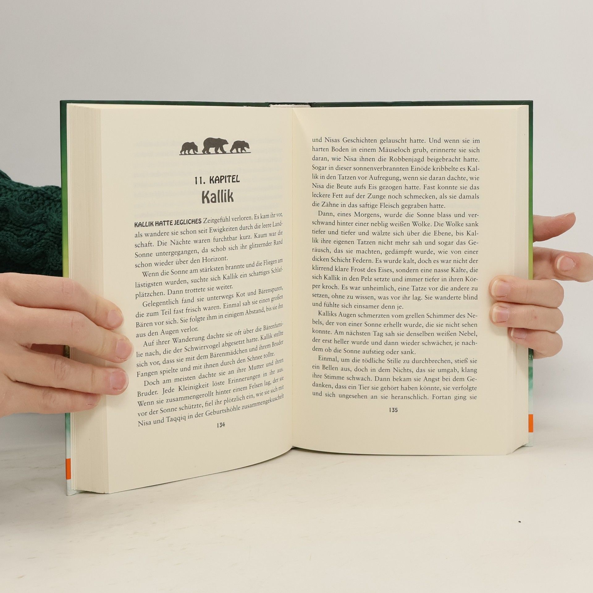 Toklo spürte, wie die Bärengeister an seinen Tatzen zerrten, ihn ins Wasser zogen, und er meinte, die Stimmen Tobis und seiner Mutter zu hören. Komm zu uns, flüsterten sie. Komm ins Wasser... Der Grizzly Toklo ist mit seinen neuen Gefährten Ujurak und Lusa endlich am Großen Bärensee angekommen. Dort versammeln sich zum Längsten Tag unzählige Braunbären, Schwarzbären und Eisbären, um die Geister gnädig zu stimmen. Auch die junge Eisbärin Kallik zieht es zum See in der Hoffnung, endlich ihren Bruder zu finden. Doch zwischen all den ausgewachsenen Bären ist kein Platz für Junge ohne Schutz. Es herrschen Unruhe und Feindseligkeit. In ihrem erbitterten Kampf ums Überleben scheinen die Bären vor nichts mehr zurückzuschrecken. Toklo, Lusa, Ujurak und Kallik geraten in große Gefahr ...