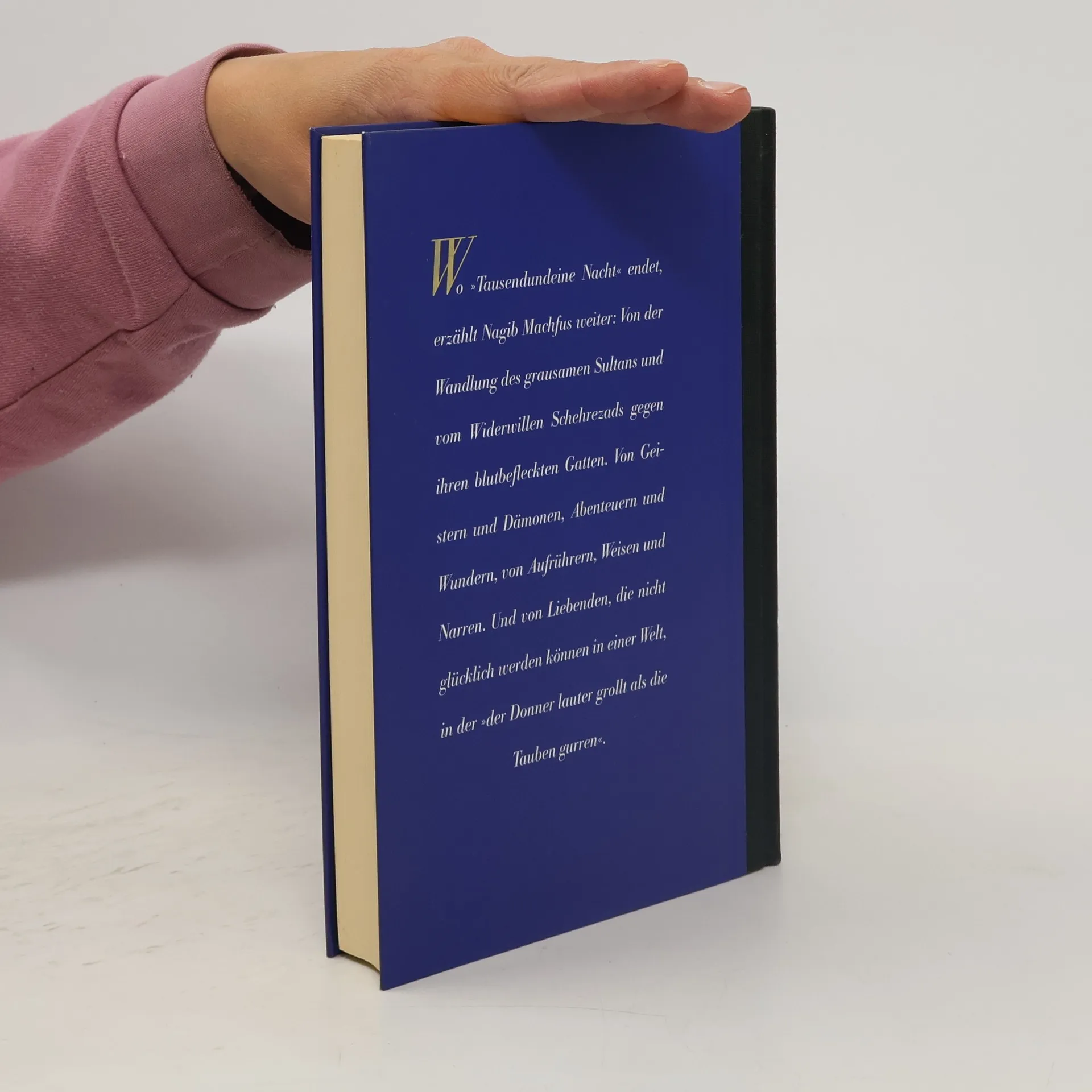 Es gibt Bücher, deren Anblick allein lädt zur Lektüre ein. Ein so herausragend schön gestaltetes Buch ist der 1982 in Kairo erschienene Band Die Nacht der Tausend Nächte von Nagib Machfus. Gekonnt nimmt der ägyptische Nobelpreisträger den Erzählfaden von Scheherezade am Morgen der Tausendundersten Nacht auf. Wird sie den blutrünstigen Sultan dauerhaft umstimmen können? Scheherezade lebt in einer Welt, in der die Geister und Dämonen ganz selbstverständlich das Leben der Menschen bestimmen. So wie es dem angesehenen Kaufmann Sanan al-Gamali ergeht, der von einem Dschinn angegriffen wird, und von ihm einen Mordauftrag erhält. Oder stammt die Wunde an seinem Oberarm in Wirklichkeit nur von einem bissigen Hund? Machfus schwelgt in orientalischen Genüssen, Düften und Lebensgewohnheiten, die im Leser noch einmal längst vergessen geglaubte Erinnerungen an Tausendundeine Nacht wecken. --Manuela Haselberger
