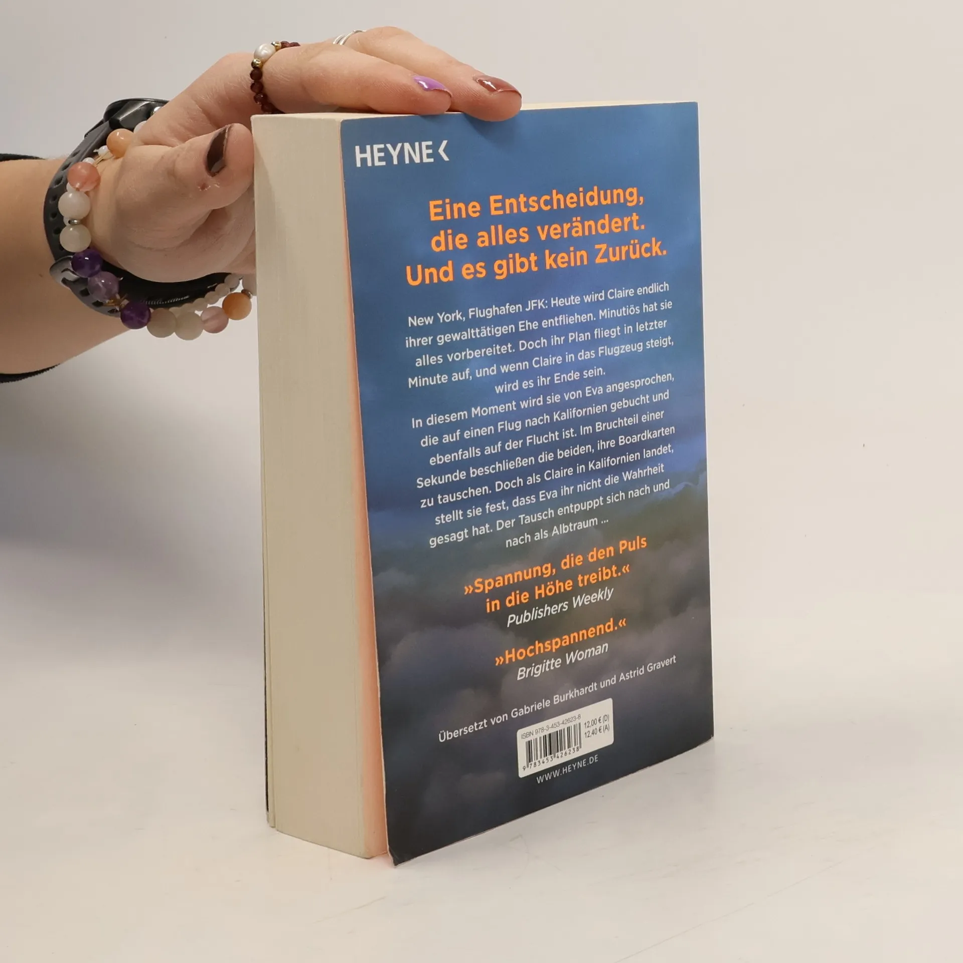 Zwei Frauen auf der Flucht. Eine Entscheidung, die alles verändert. Und kein Weg zurück. New York, Flughafen JFK: Heute wird Claire endlich ihrer gewalttätigen Ehe entfliehen. Minutiös hat sie alles vorbereitet. Doch ihr Plan fliegt in letzter Minute auf, und wenn Claire in das Flugzeug steigt, wird es ihr Ende sein. In diesem Moment wird sie von Eva angesprochen, die auf einen Flug nach Kalifornien gebucht und ebenfalls auf der Flucht ist. Im Bruchteil einer Sekunde beschließen die beiden, ihre Bordkarten zu tauschen. Doch als Claire in Kalifornien landet, stellt sie fest, dass Eva ihr nicht die Wahrheit gesagt hat. Der Tausch entpuppt sich nach und nach als Albtraum ...