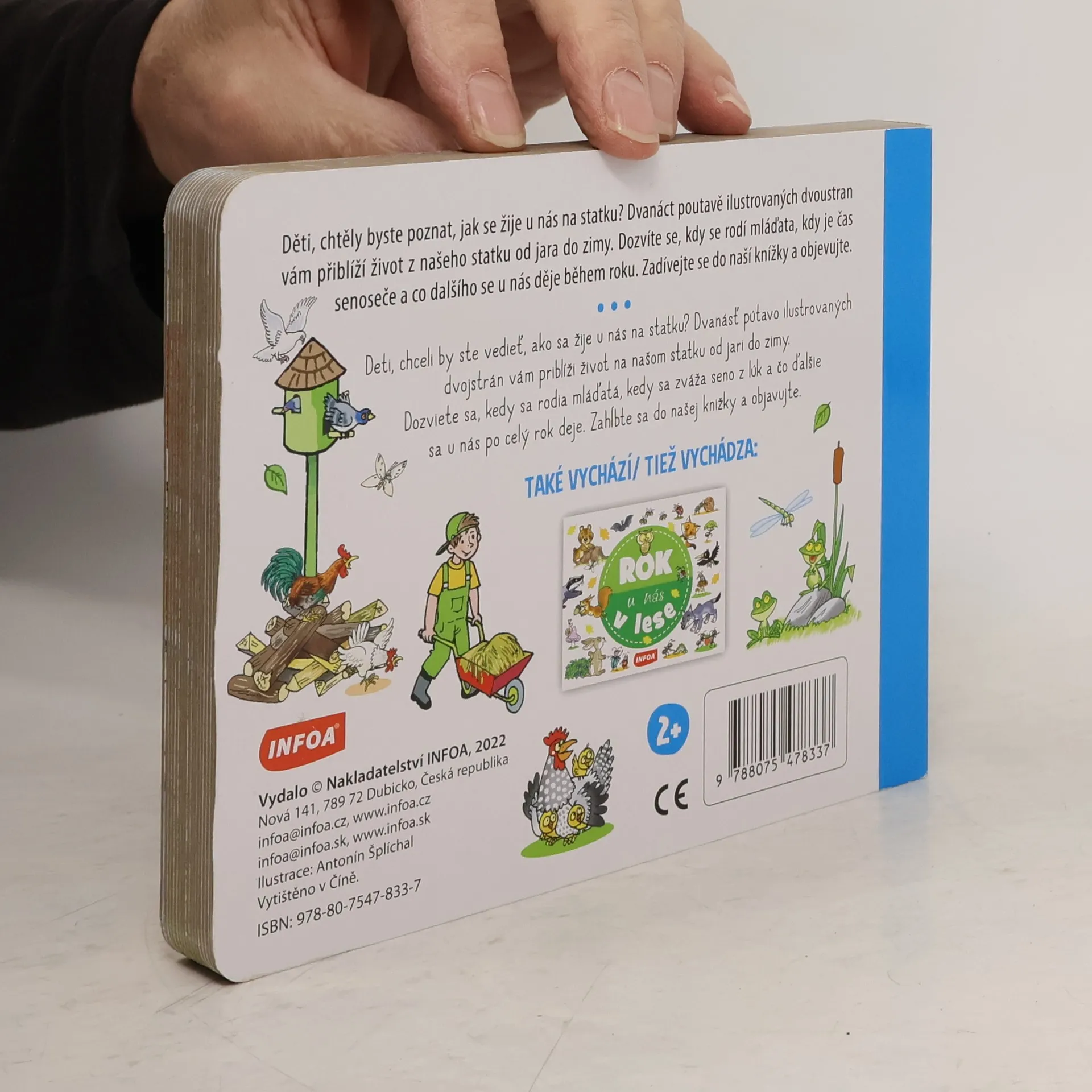 Děti, chtěly byste poznat, jak se žije u nás na statku? Dvanáct poutavých ilustrovaných dvoustran vám přiblíží život z našeho statku od jara do zimy. Dozvíte se, kdy se rodí mláďata, kdy je čas senoseče a co dalšího se u nás děje během roku. Zadívejte se do naší knížky a objevujte.