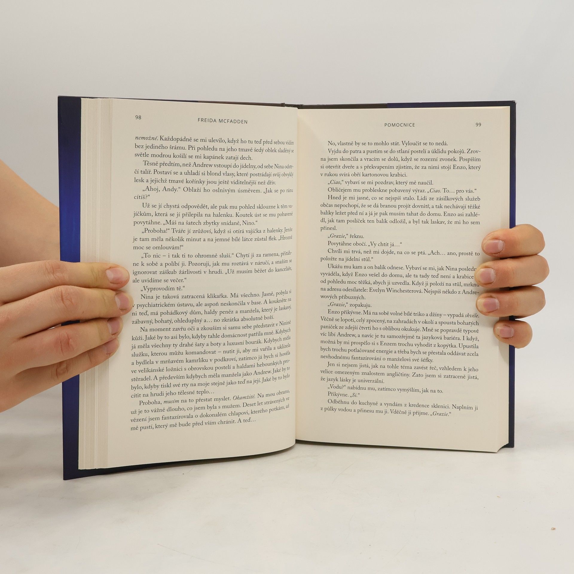 Práce u Winchesterových je moje poslední šance začít s čistým štítem. Jenže se ukáže, že jejich tajemství jsou mnohem nebezpečnější než ta moje… Každý den uklízím jejich krásný dům, vyzvedávám jejich dceru ze školy a vařím pro celou rodinu. Sama pak jím ve svém pokojíku v podkroví. Snažím se nevnímat, jak Nina dělá nepořádek, jen aby se mohla dívat, jak ho uklízím. Jak o vlastní dceři vypráví podivné lži. A jak se její manžel Andrew zdá být den ode dne ztrápenější. Ale když se dívám do jeho krásných očí, je těžké si nepředstavovat, jaké by to bylo, žít Ninin život. Winchesterovi nevědí, kdo doopravdy jsem. Nevědí, čeho jsem schopná…
