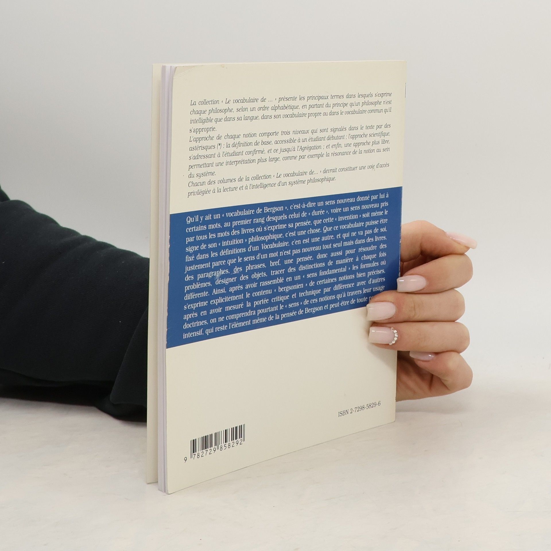 Qu'il y ait un « vocabulaire de Bergson » c'est-à-dire un sens nouveau donné par lui à certains mots, au premier rang desquels celui de « durée », voire un sens nouveau pris par tous les mots des livres où s'exprime sa pensée, que cette « invention » soit même le signe de son « intuition » philosophique, c'est une chose. Que ce vocabulaire puisse être fixé dans les définitions d'un Vocabulaire, c'en est une autre, et qui ne va pas de soi, justement parce que le sens d'un mot n'est pas nouveau tout seul mais dans des livres, des paragraphes, des phrases, bref, une pensée, donc aussi pour résoudre des problèmes, désigner des objets, tracer des distinctions de manière à chaque fois différente. Ainsi, après avoir rassemblé en un « sens fondamental » les formules où s'exprime explicitement le contenu « bergsonien » de certaines notions bien précises, après en avoir mesuré la portée critique et technique par différence avec d'autres doctrines, on ne comprendra pourtant le « sens » de ces notions qu'à travers leur usage intensif, qui reste l'élément même de la pensée de Bergson et peut-être de toute pensée.