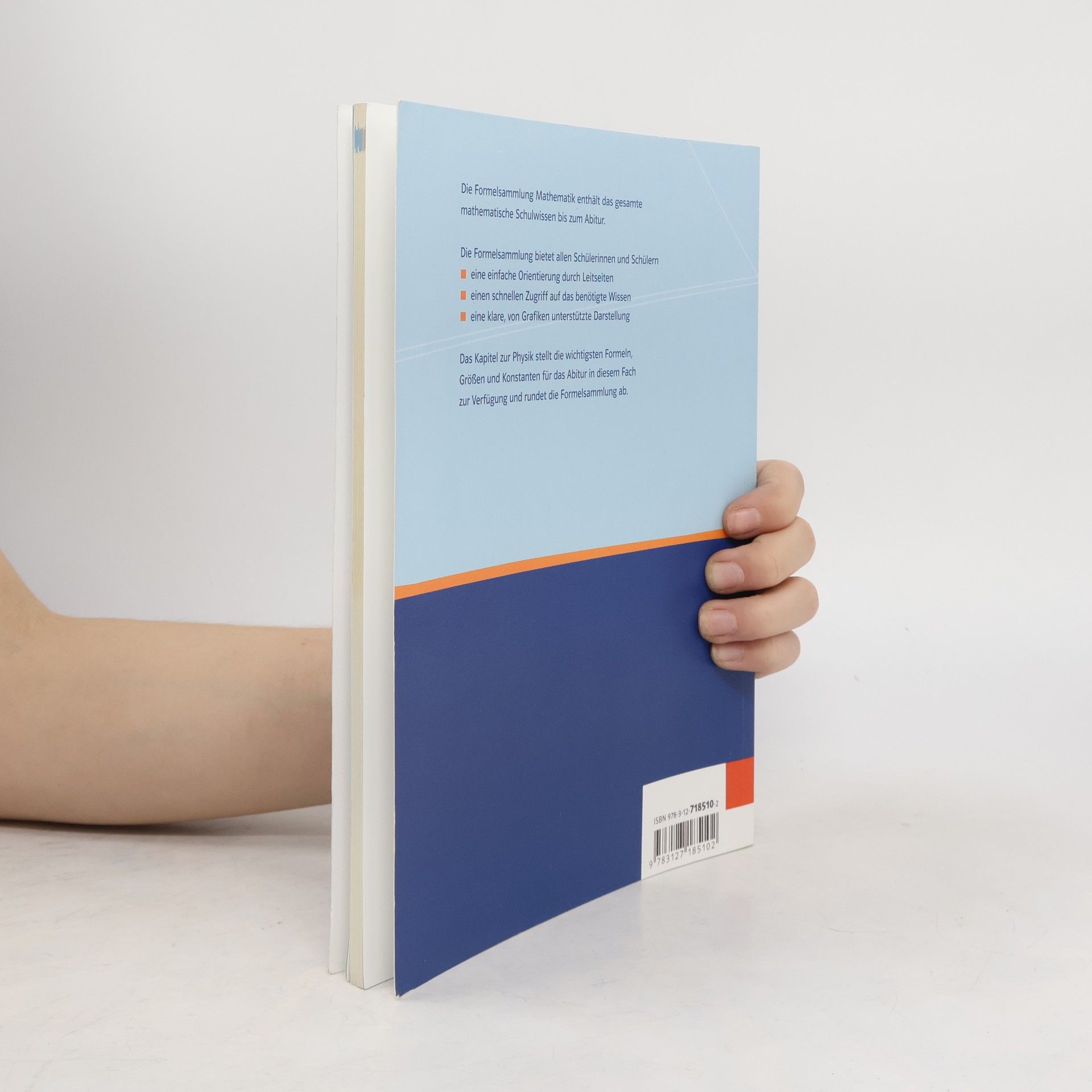 NEU: Jetzt mit beigelegter Merkhilfe für Baden-Württemberg (zugelassen für die Abiturprüfung ab 2017!) Übersichtlich zusammengestellt finden Sie in dieser neuen Formelsammlung für Gymnasien alle Formeln und Grundbegriffe, die Ihre Schülerinnen und Schüler bis zum Abitur benötigen. Die Pluspunkte auf einen Blick: schneller Zugriff auf drei möglichen Wegen: Inhaltsverzeichnis, Leitseiten oder Register, die Leitseiten bieten einen Überblick über den Themenbereich und ermöglichen das schnelle Auffinden relevanter Inhalte, die Inhalte werden durch Grafiken erläutert und verdeutlicht, Querverweise vernetzen die Teilgebiete sinnvoll miteinander, ausführliches, problemorientiertes Register in schülerverständlicher Sprache, ein zusätzliches Kapitel mit Formeln und Grundbegriffen aus der Physik, deckt die neuen Bildungsstandards ab, komplett vierfarbig. Die Formelsammlung wurde von der Stiftung Buchkunst als eines der schönsten deutschen Bücher prämiert!