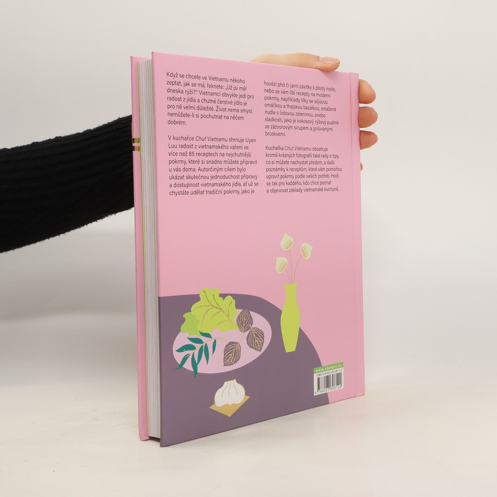 Udělejte si doma jednoduché vietnamské jídlo.Když začnete vařit podle této vietnamské kuchařky, zjistíte, že potřebujete jen hrstku surovin a pak se budete snažit vyvážit sladkou, kyselou, slanou, hořkou, ostrou a umami chuť. Mnoho receptů je pro každodenní vaření - od rychlých polévek po pokrmy sdílené členy rodiny z jedné mísy a zázraky z jednoho hrnce. V knize jsou jídla i na víkendy a svátky, kdy máte o něco více času na vaření. Říká se tomu jídlo pro zábavu. Pokrmy můžete upravovat podle toho, jaké suroviny máte po ruce, a pokud něco neseženete, nahradíte to, recepty slouží jako kostra z přísad a postupů. Přizpůsobujte recepty, spotřebovávejte všechno beze zbytků a vystačte si s tím, co máte. Snadno poznáte, jak lze dát jídlu pravou vietnamskou chuť. Čeká vás třeba tofu s rajčaty a výhonkovou brokolicí v rybí omáčce, houby a topinambury prudce opékané v pánvi, horká a ohnivá zelenina s ančovičkami, kuřecí salát s cukrovým hráškem, vietnamským koriandrem a šalotkami nebo čerstvé závitky se salátem.