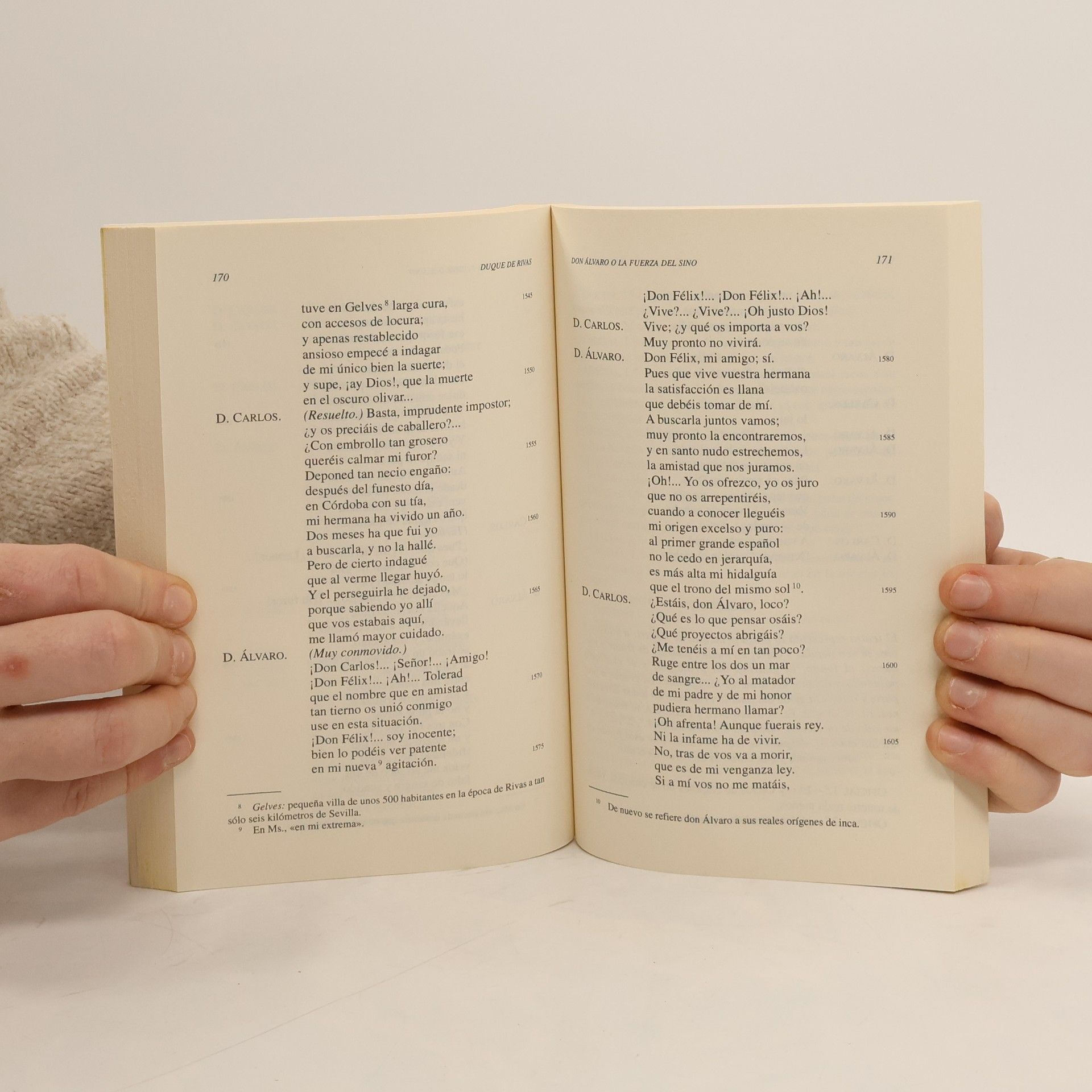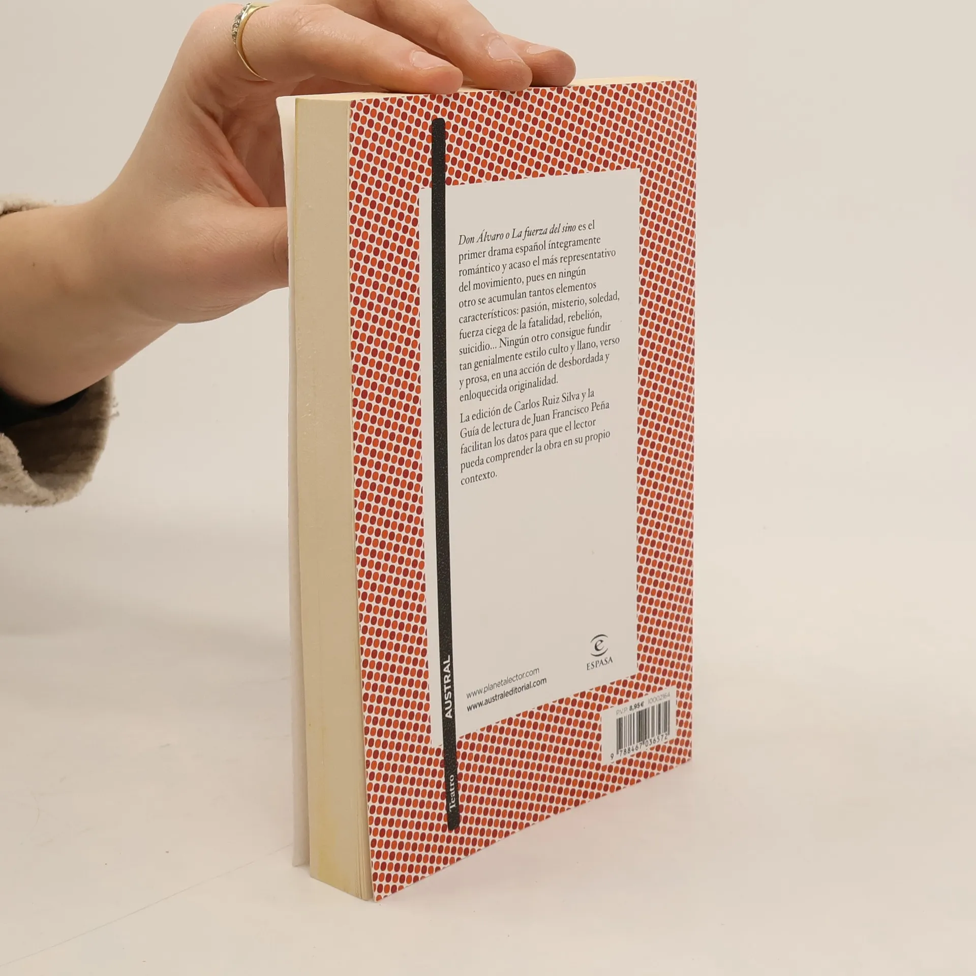 "Don Alvaro o La fuerza del sino" es el primer drama español íntegramente romántico y acaso el más representativo del movimiento, pues en ningún otro se acumulan tantos elementos característicos : pasión, misterio, soledad, fuerza ciega de la fatalidad, rebelión, suicidio... Ningún otro consigue fundir tan genialment estilo culto y llano, verso y prosa, en una acción de desbordada y enloquecida originalidad. La edición de Carlos Ruiz Silva y la Guía de lectura de Juan Francisco Peña facilitan los datos para que el lector pueda comprender la obra en su propio contexto